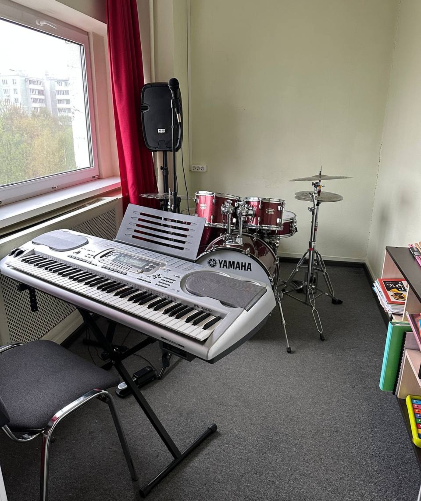 Класс может быть использован для занятий вокалом, гитарой или для занятий на ударных!
