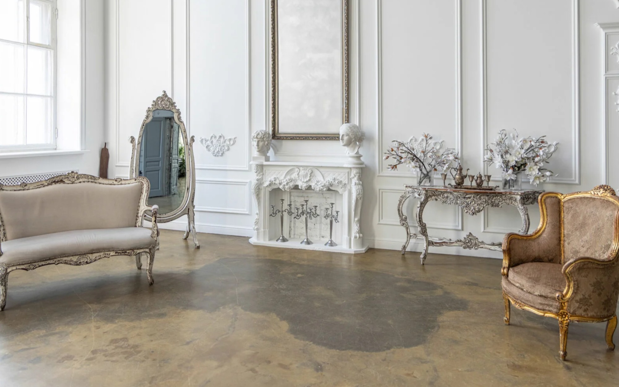 Реквизит Свечи Ванна Кровать Гипсовые фигуры Гримерный стол Диван Зеркало Камин Комод Кресло Лестница Люстра Мольберт Пианино/Рояль Распашные двери Рейл для одежды Скамейка Стол Трон