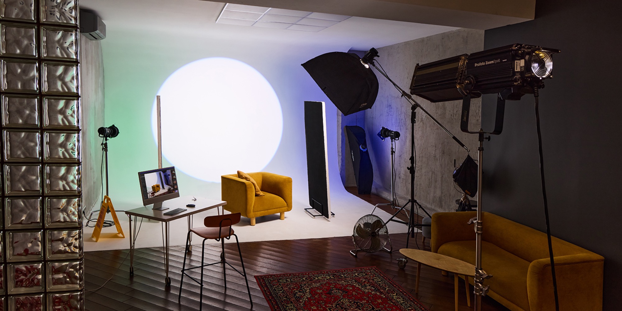 О площадке Очень светлый зал с большой циклорамой 6x3,5 метра. В зале установлены очень яркие лампы, имитирующие дневное освещение. Зал подходит также для видеосъемок. Интерьер и освещение могут отличаться от фото.