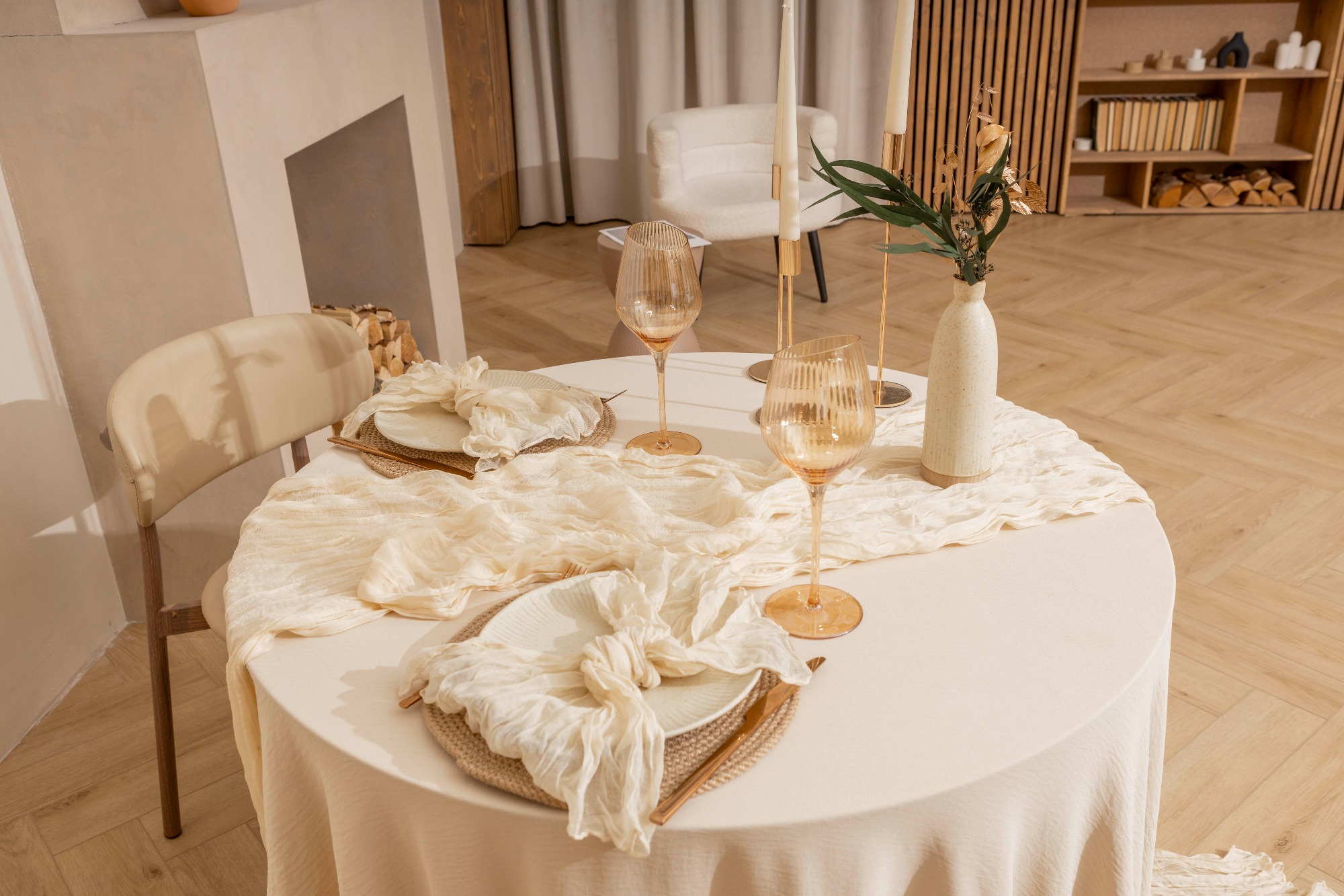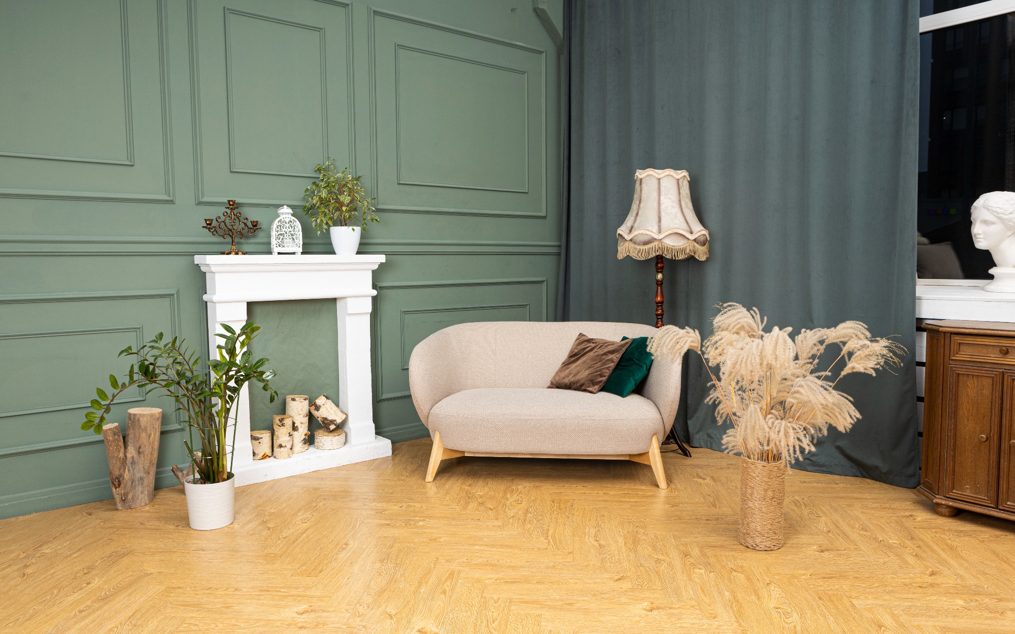 Реквизит Книги Свечи Гипсовые фигуры Диван Журнальный столик Камин Картины Книжный шкаф Ковер Кресло Пледы Подушки Стол Цветы
