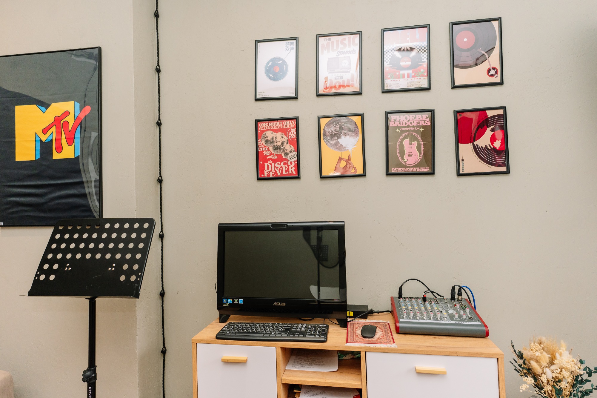 Все отлично! Хорошая локация, рядом у метро! По оснащению понравилось, что нормальный инструмент, и две колонки, можно в стерео слушать и заниматься. Немного крехтел провод, но это мелочи))