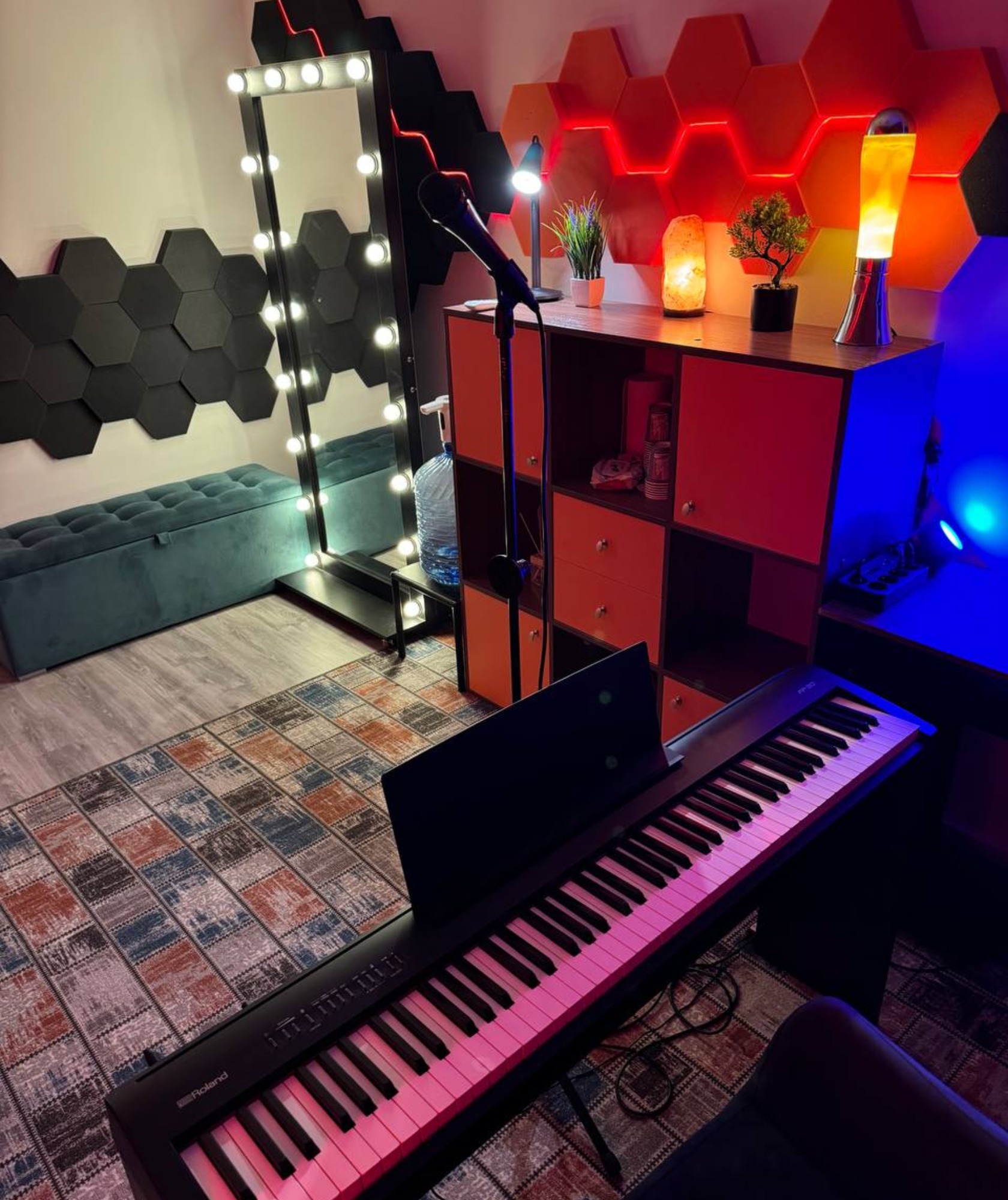 О площадке • Цифровое фортепиано: — Цифровоe полноpaзмeрное фоpтeпиано ROLAND FP30 black (с молоточковым мeхaнизмoм, 88 клавиш) • Микрофон: — Shure 58beta (динамический) • Акустика: — Профессиональные мониторы KRK Rokit 5G4 black • Микшер: — Микшерный пульт Freeboss AG-AS04A • Кольцевая лампа • Трипод (штатив) для телефона Интерьерная подсветка, звукоизоляция, высокоскоростной WiFi, кулер с водой. Возможна аренда под мероприятия и музыкальные стримы, по запросу предоставляется мощный ноут для данных задач.