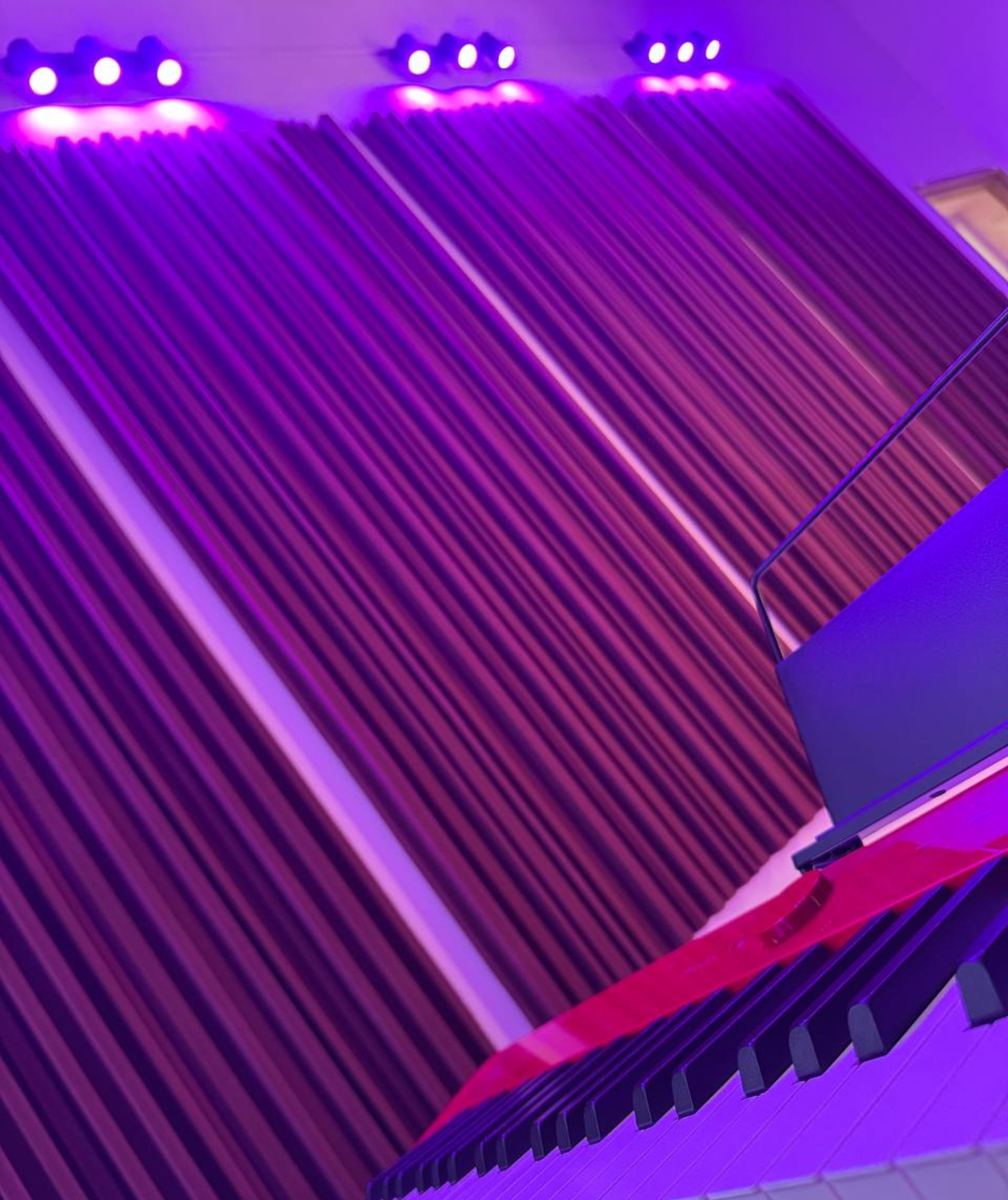 Доп свет (штатив, шторки) 200р Доп микрофон 250р Доп микшер 350р Гитара с подключением / без 500р Электрогитара 750р Второе фортепиано 1000р Оборудование Два пианино в классе Микшерный пульт с USB Цифровое пианино Режим "караоке"