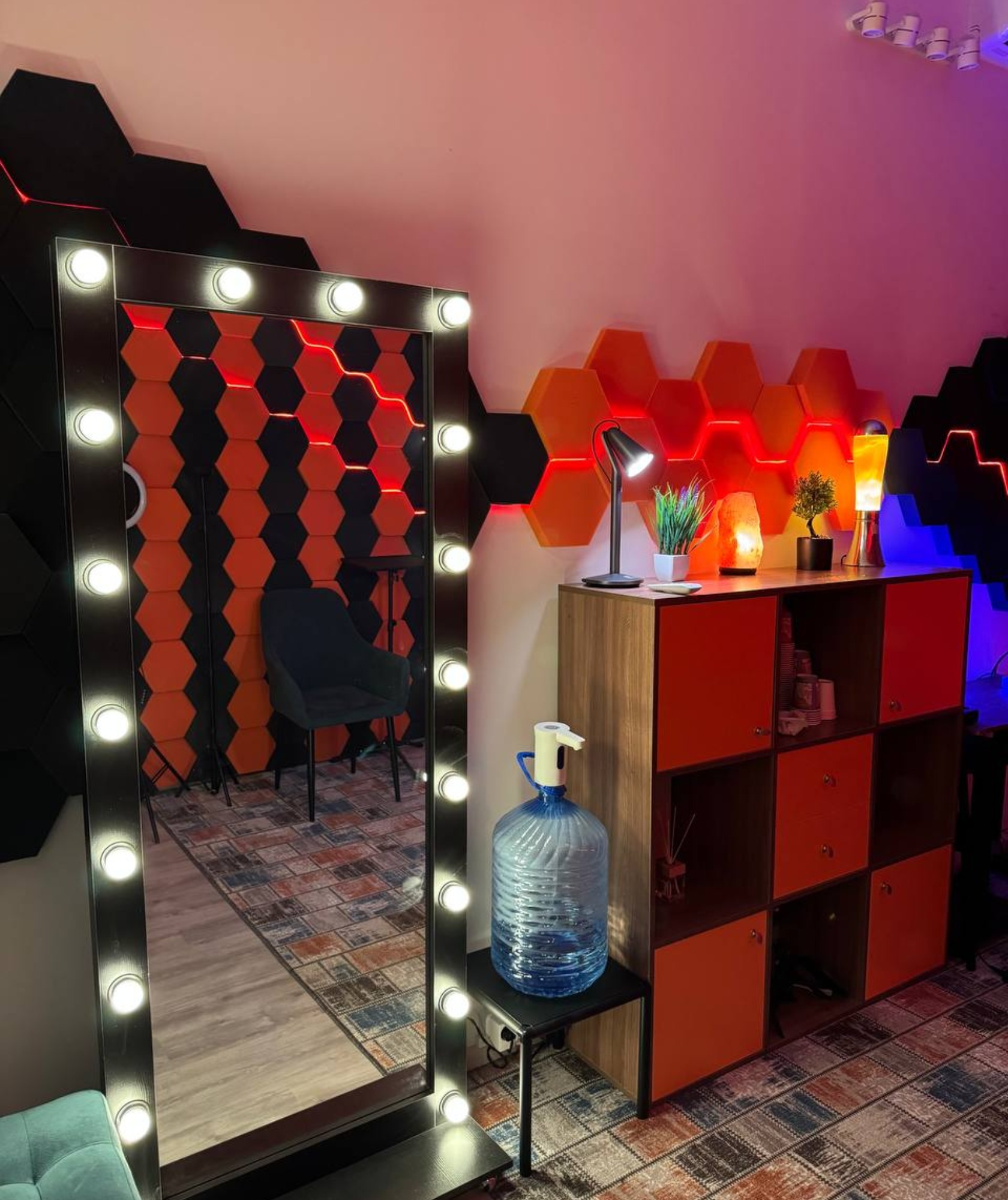 Интерьерная подсветка, звукоизоляция, высокоскоростной WiFi, кулер с водой. Возможна аренда под мероприятия и музыкальные стримы, по запросу предоставляется мощный ноут для данных задач.