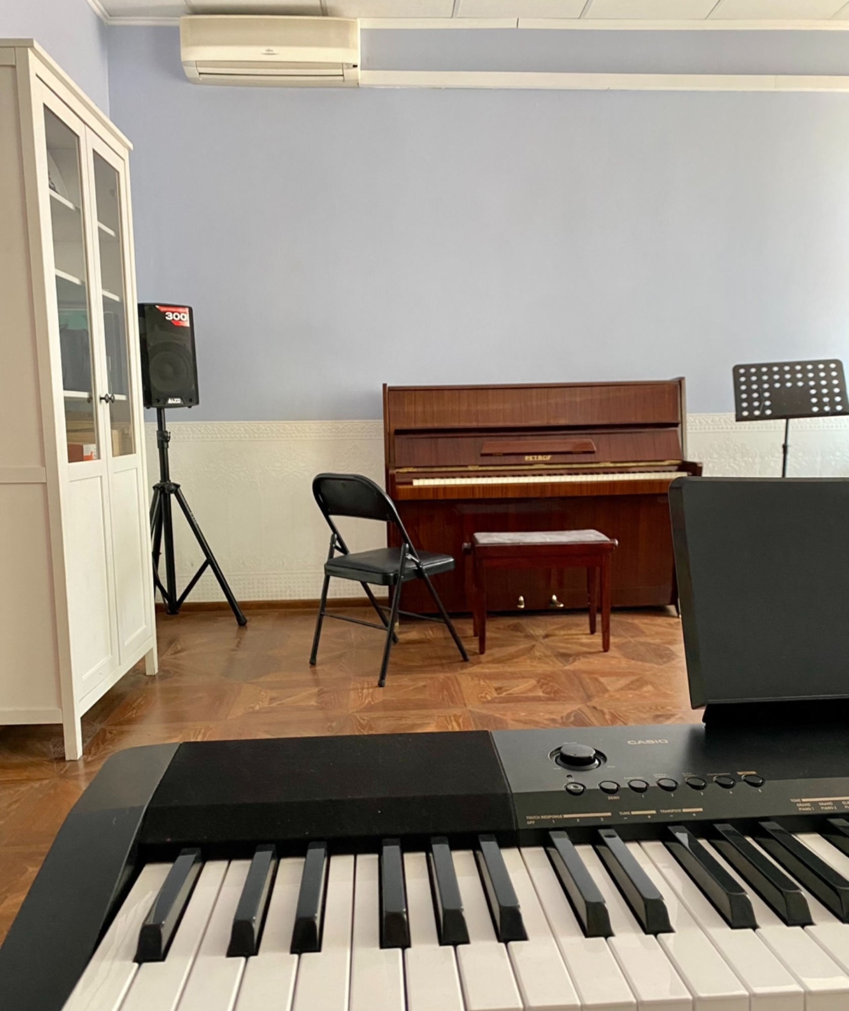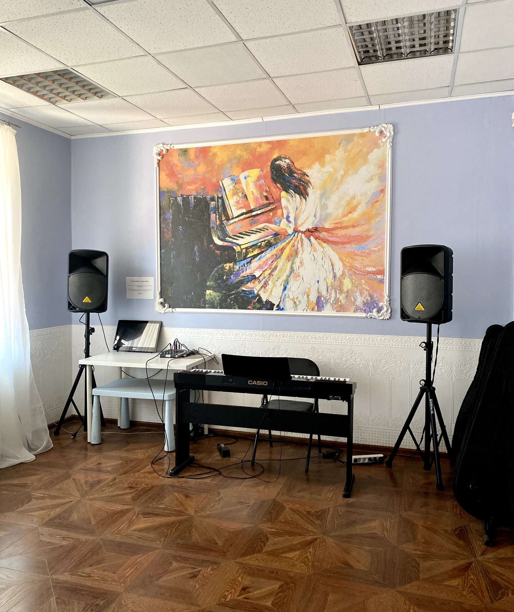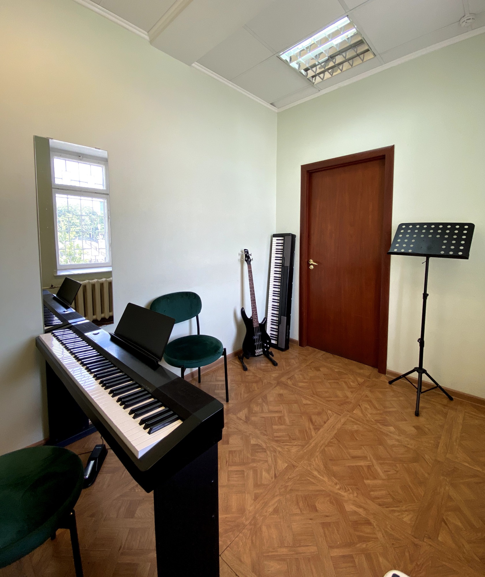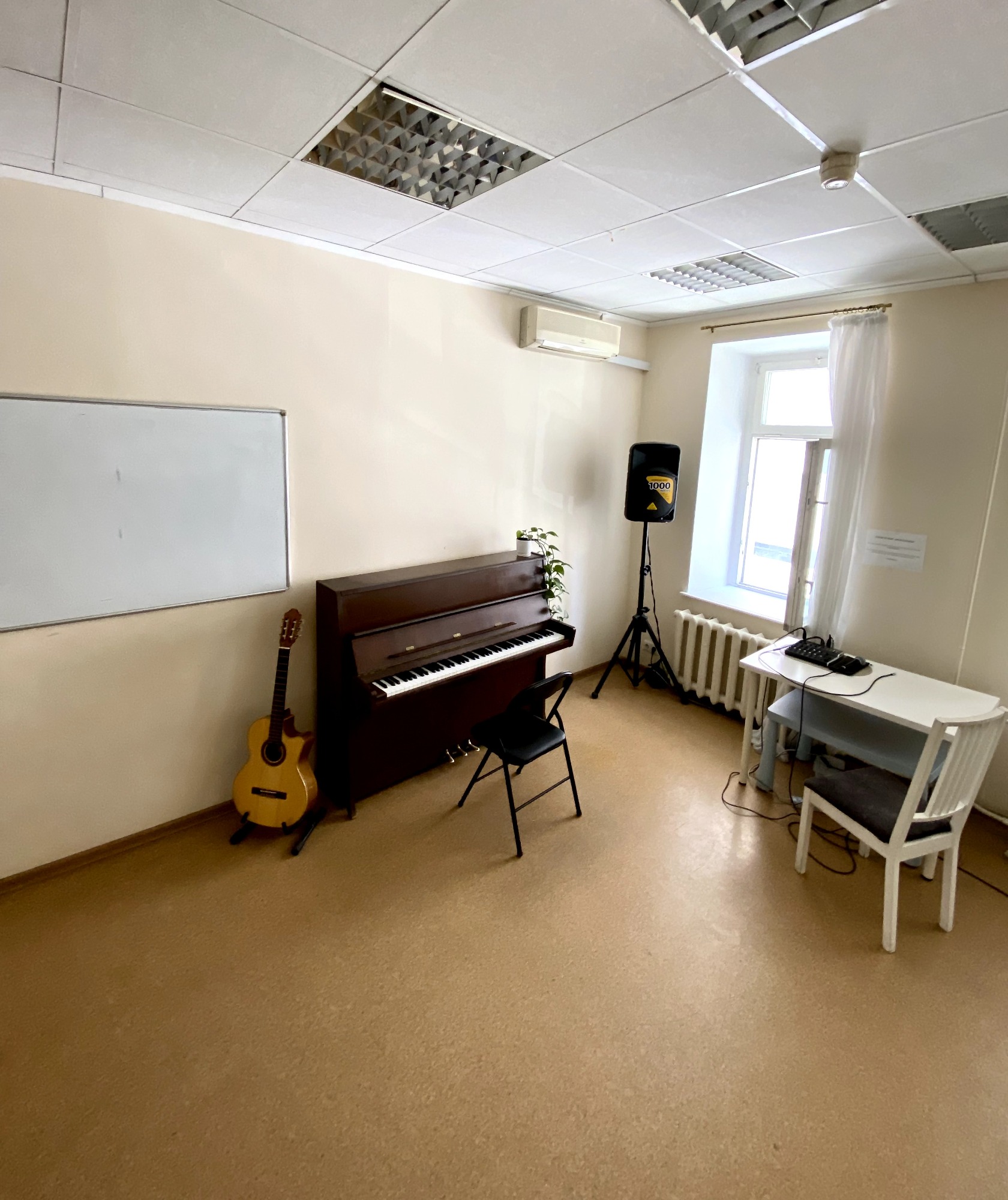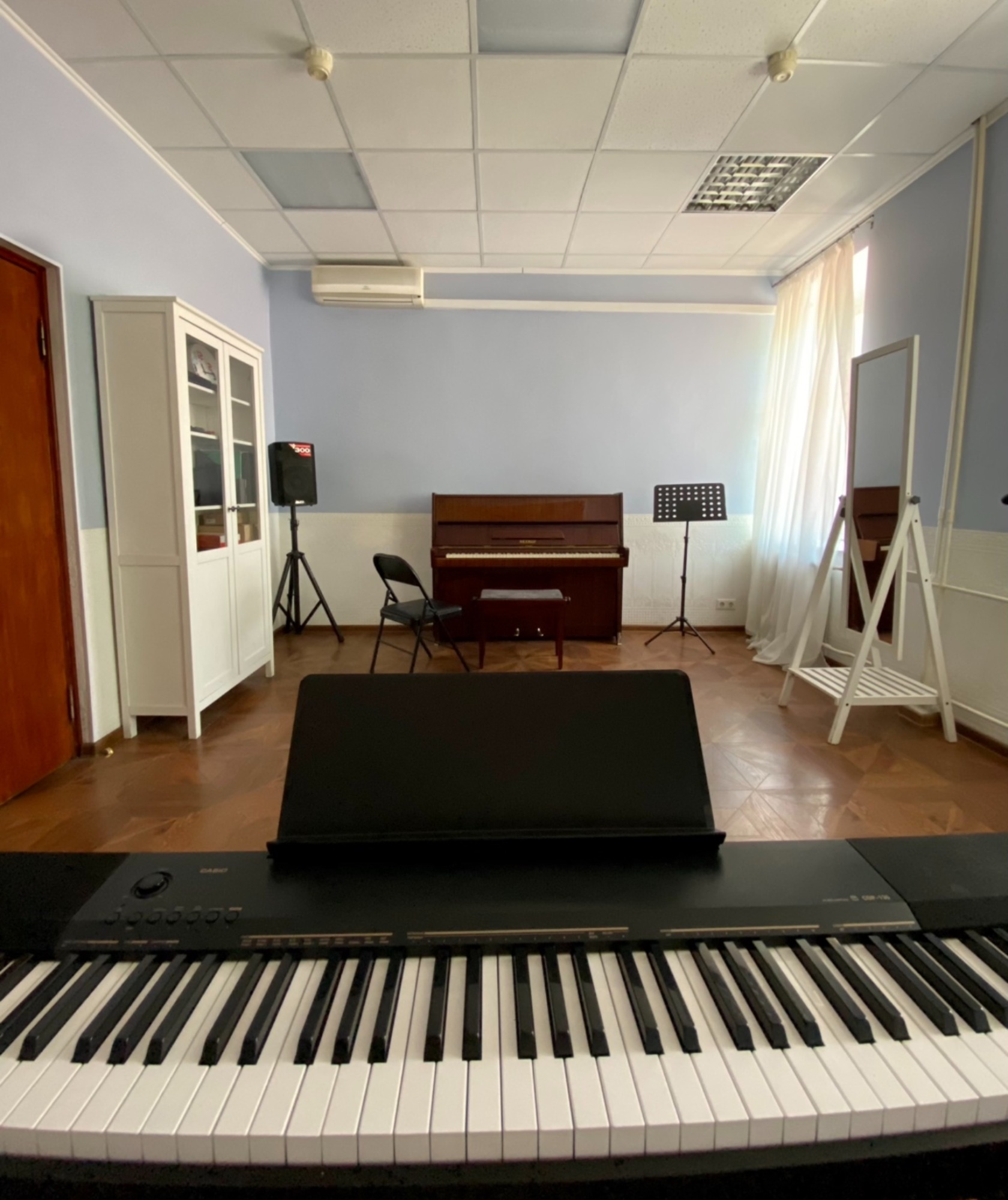 Очень удобный и уютный класс. Большое окно, светло и не душно. Только у синтезатора нет педали.
