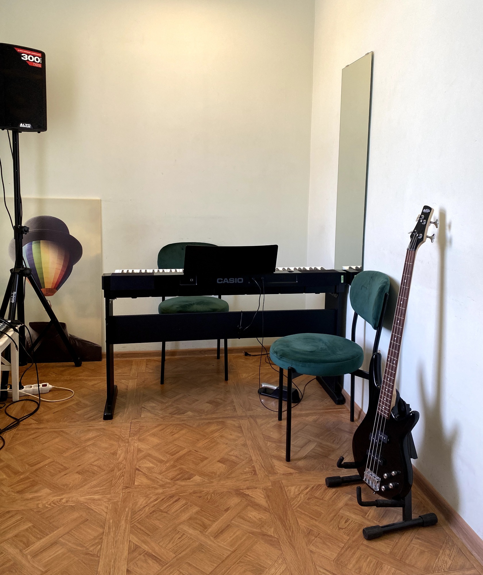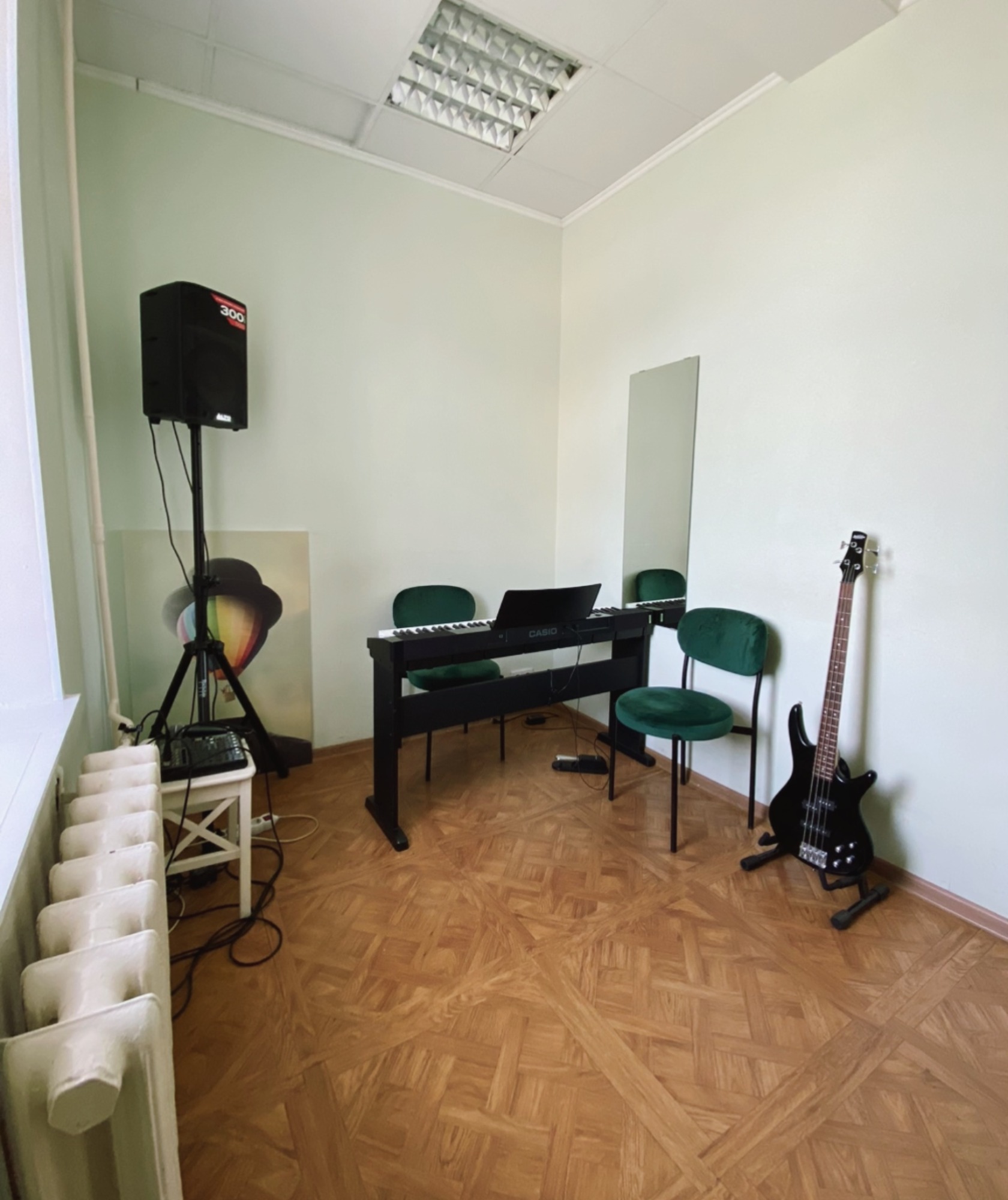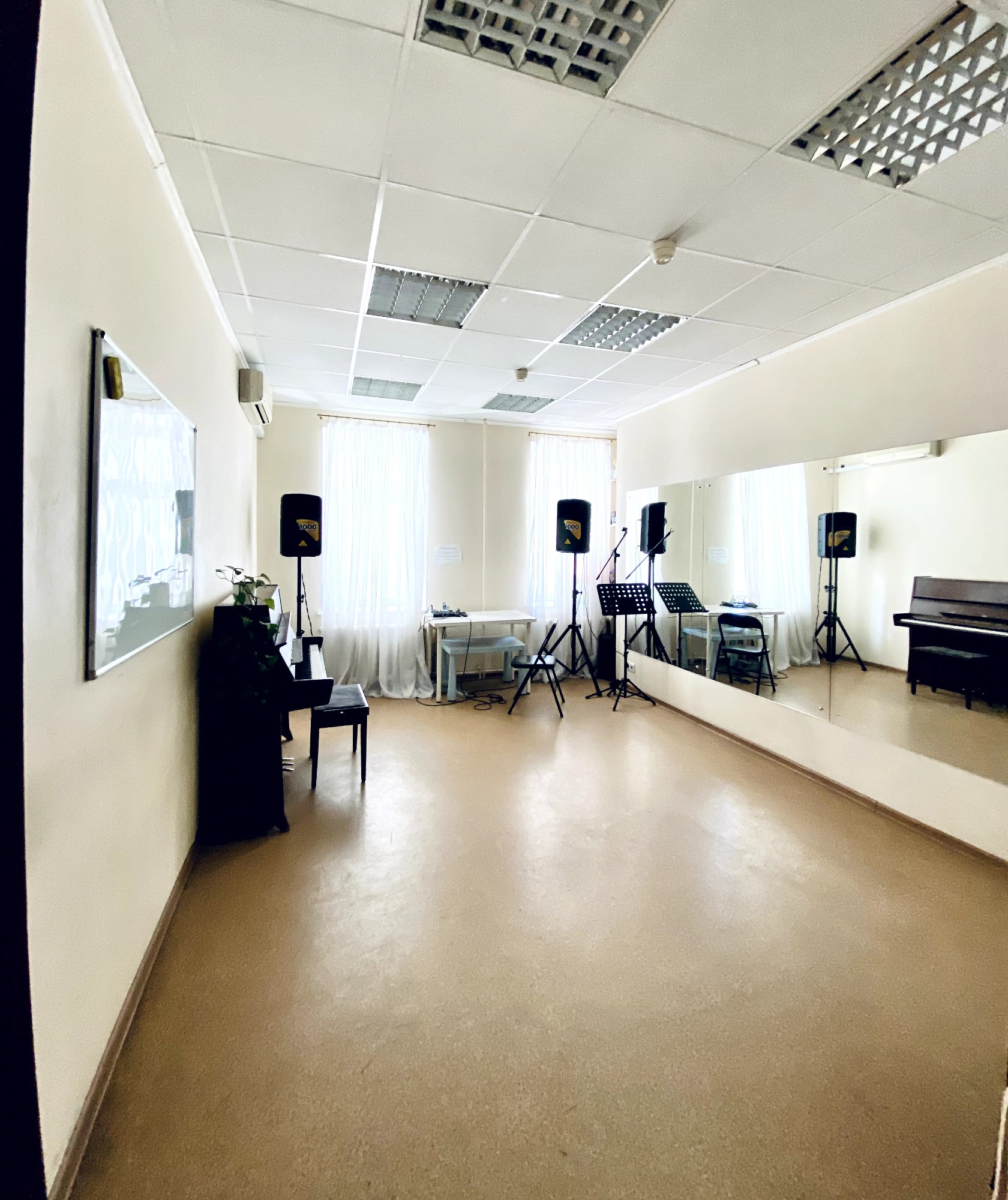 Прекрасный класс!!! Акустика, мак, воздух, простор. Атмосфера располагает, локация удобная. Заниматься в удовольствие.