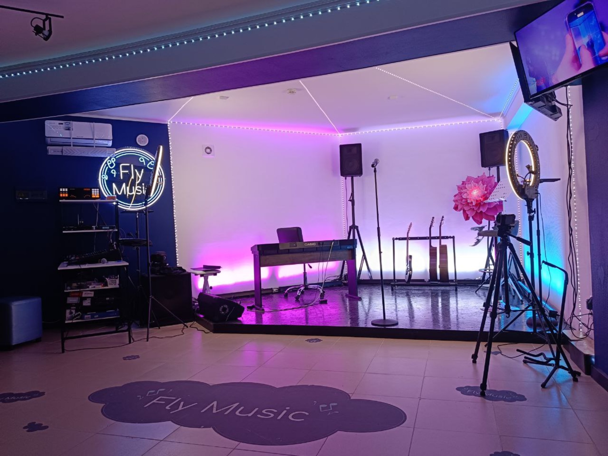 Fly Music — это музыкальное пространство для тех, кто любит и живет музыкой, для тех, кто занимается музыкой и вокалом профессионально и ищет идеальное место обучения или репетиций, а также для тех, кто просто любит петь в кругу друзей. Мы рады всем!