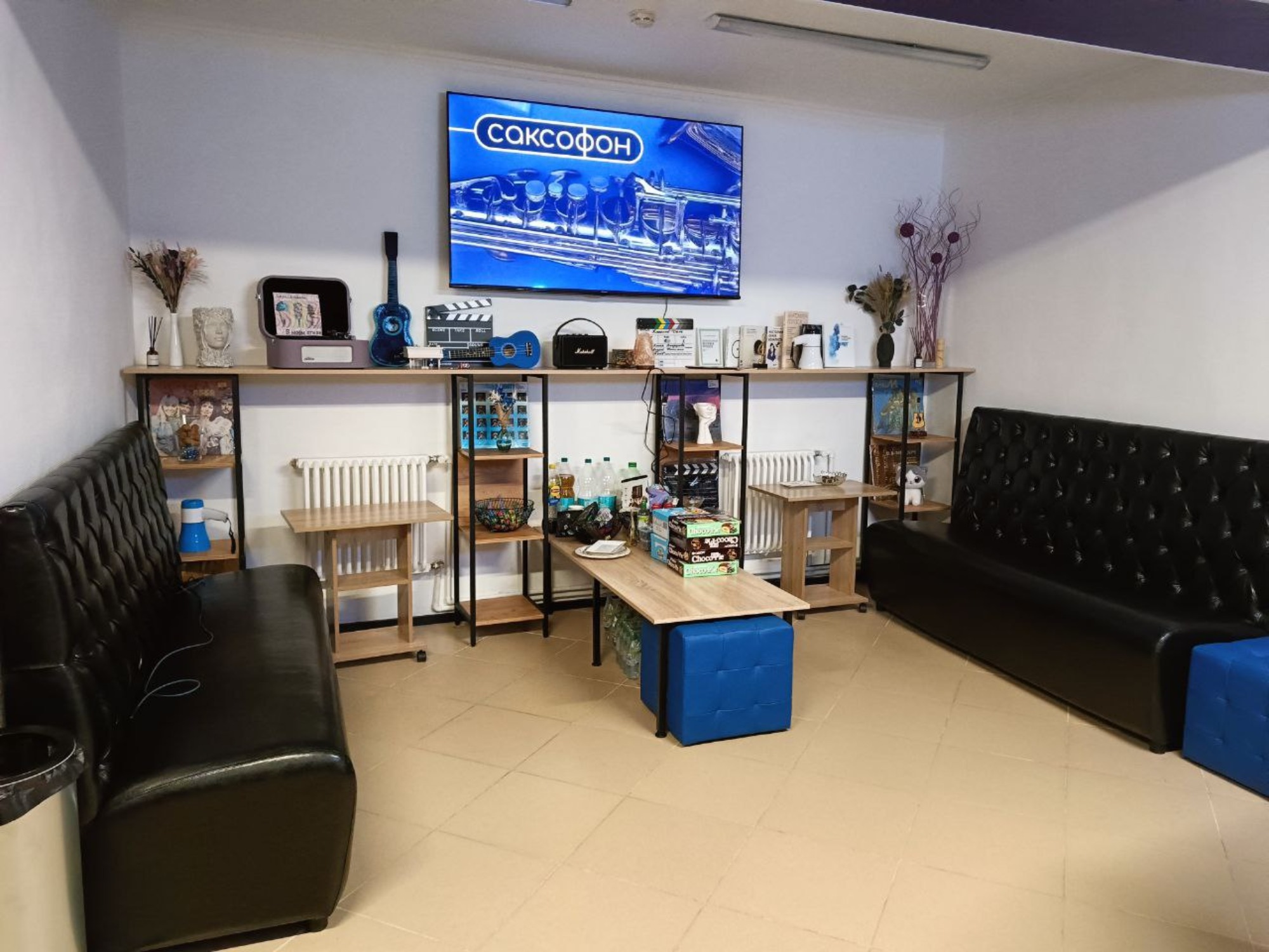 Желаю ребятам максимального процветания! Комната мини, но места достаточно: есть небольшая сцена, зона для распевки, зеркало, три микрофона, кондиционер, и самое главное - караоке машина!