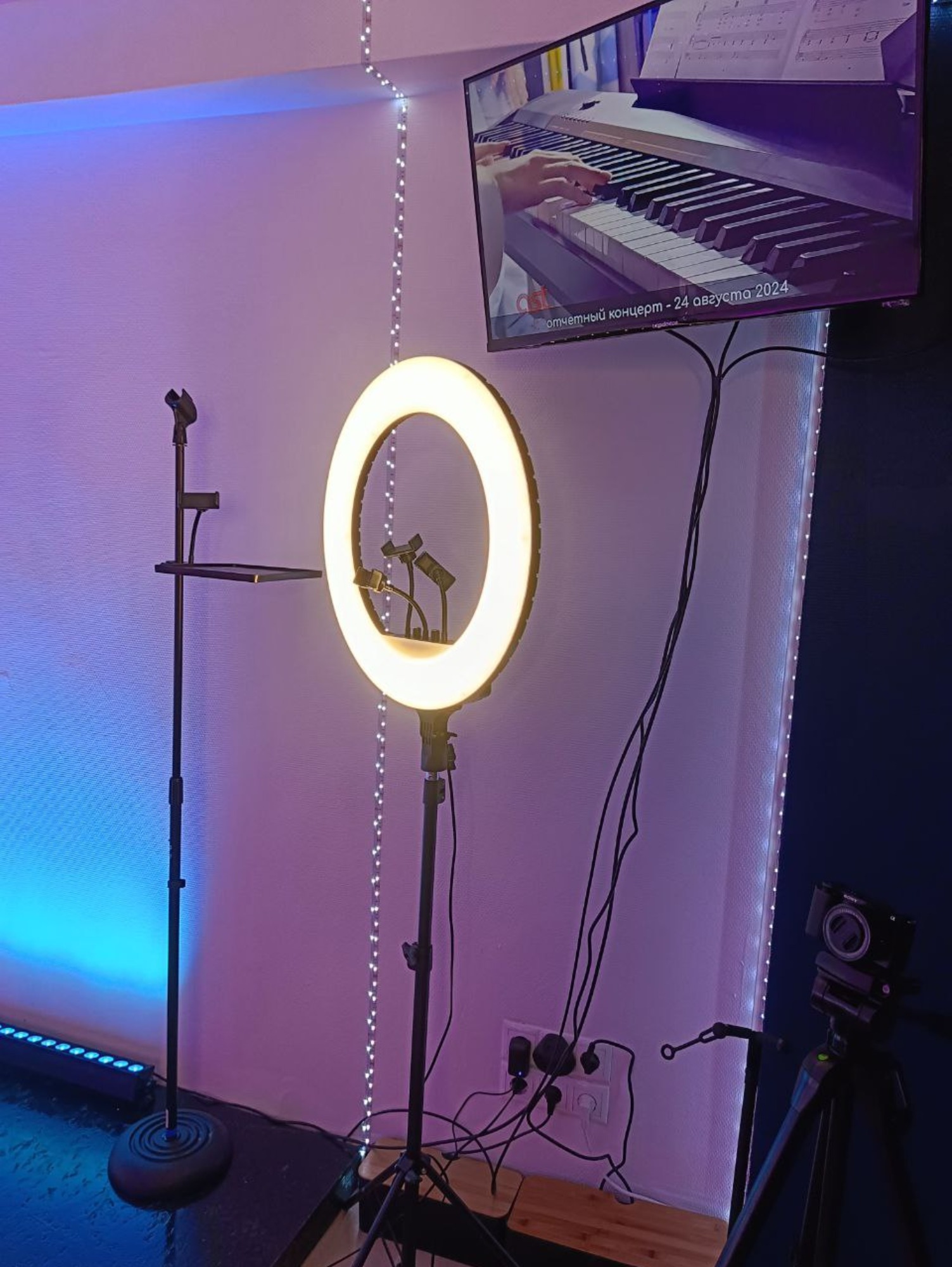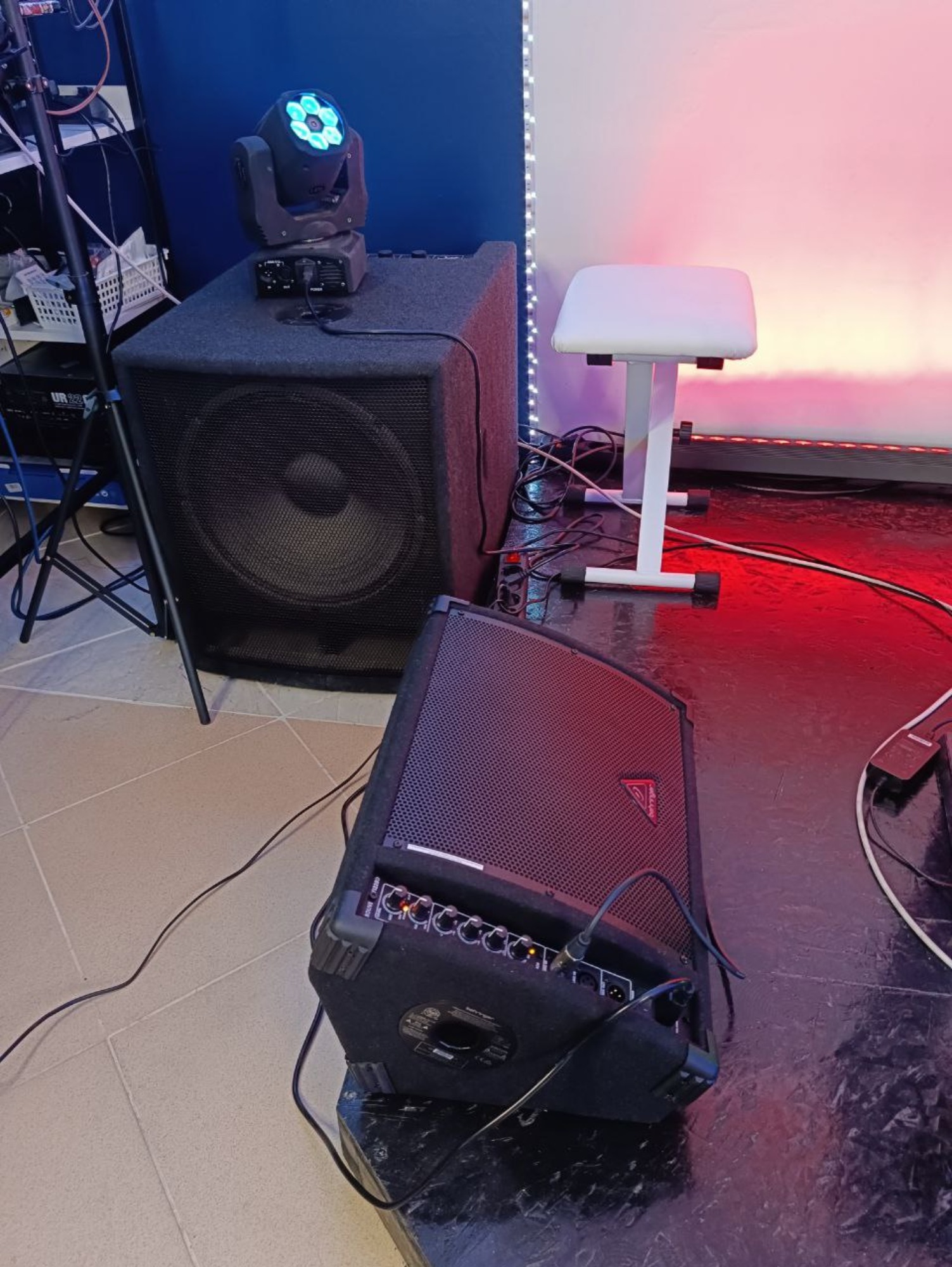 - Световое оформление: Контурная подсветка сцены, динамический и заполняющий прожекторы.