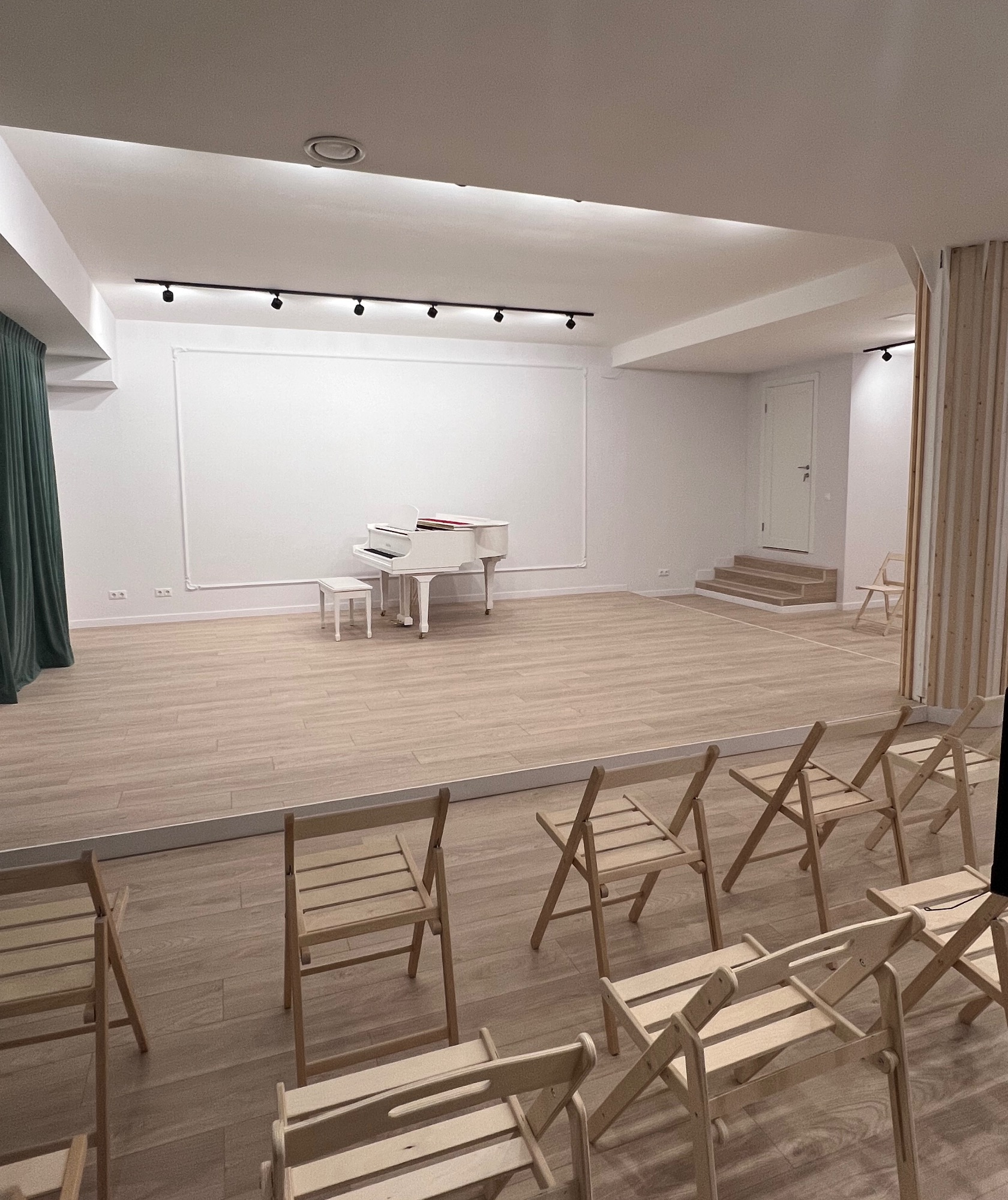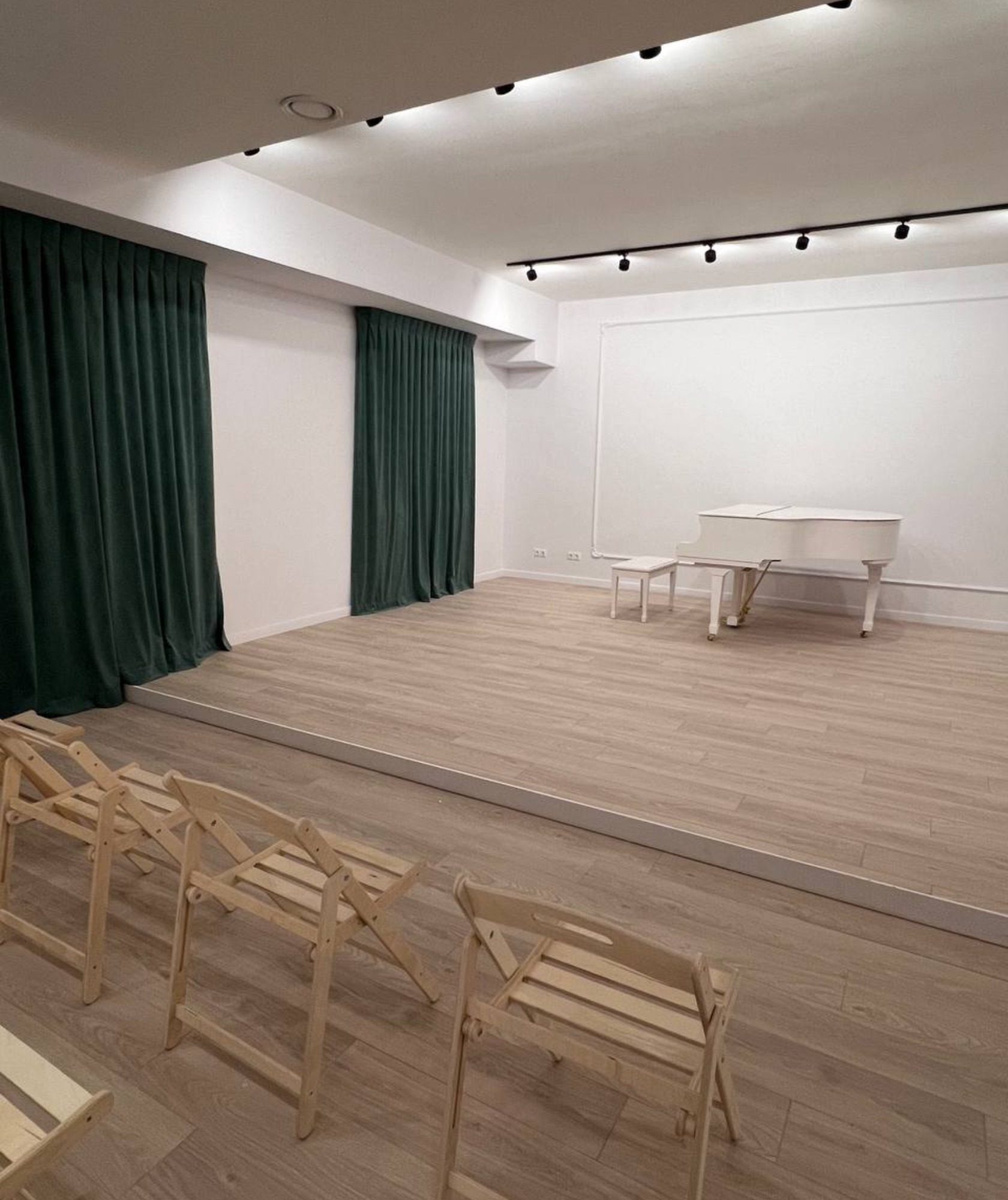- Инструмент – рояль Pearl River, подходящий для любых музыкальных исполнений, от репетиций до профессиональных концертов. - Вместимость – зал рассчитан на комфортное размещение до 50 человек, что делает его отличным выбором для мероприятий разного масштаба. - Универсальность – благодаря своей просторности и акустическим характеристикам, зал идеально подходит для концертов, записей, лекций, мастер-классов и других творческих мероприятий.