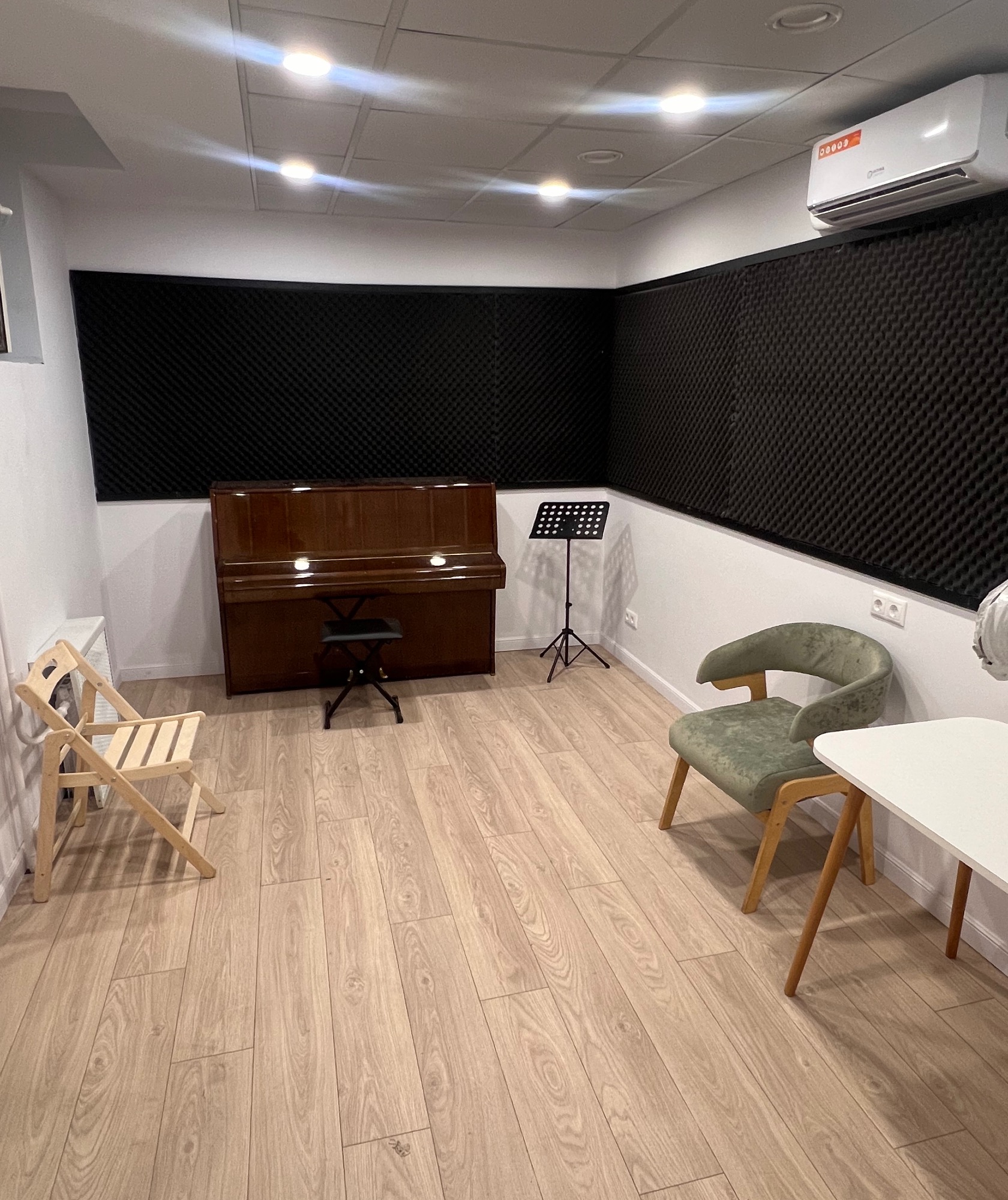 Инструмент – Zimmerman, подходящий для различных музыкальных занятий и тренировки навыков. Оборудование – класс оснащен кондиционером, аппаратурой обеспечивающим комфортную атмосферу для работы в любое время года. Комфорт и акустика – небольшое, но отлично оснащенное помещение с хорошей акустикой, которое создаст идеальные условия для занятий.