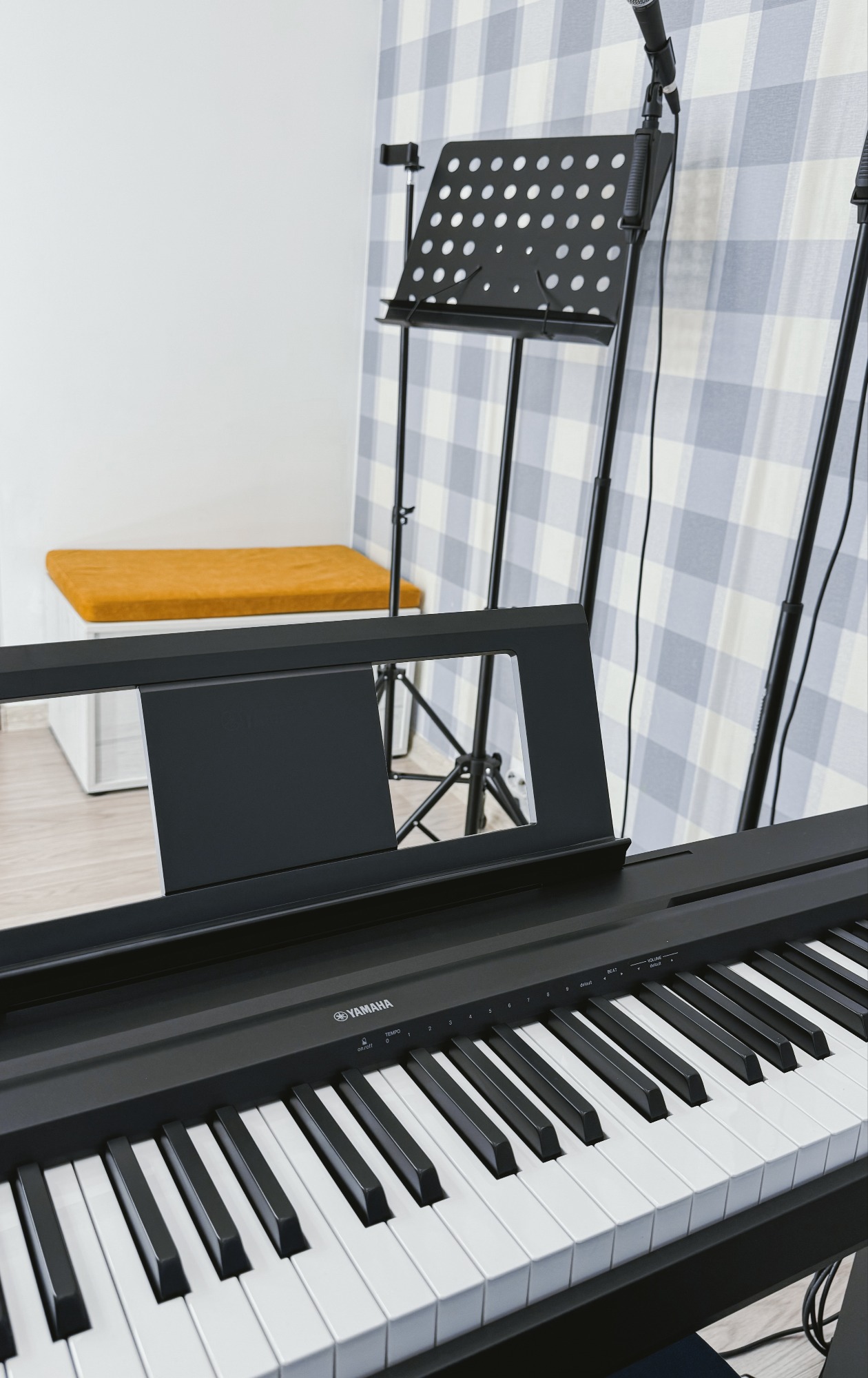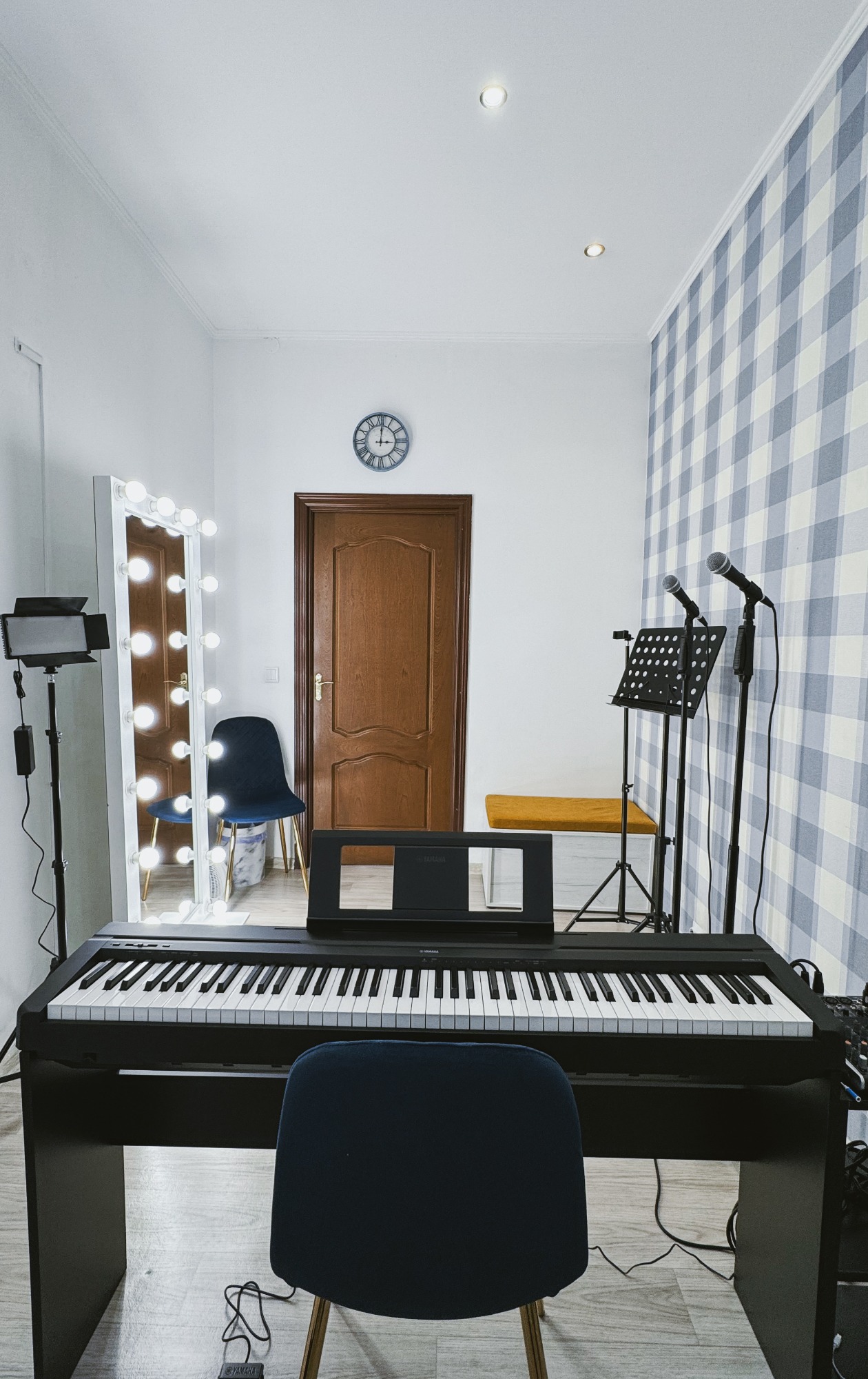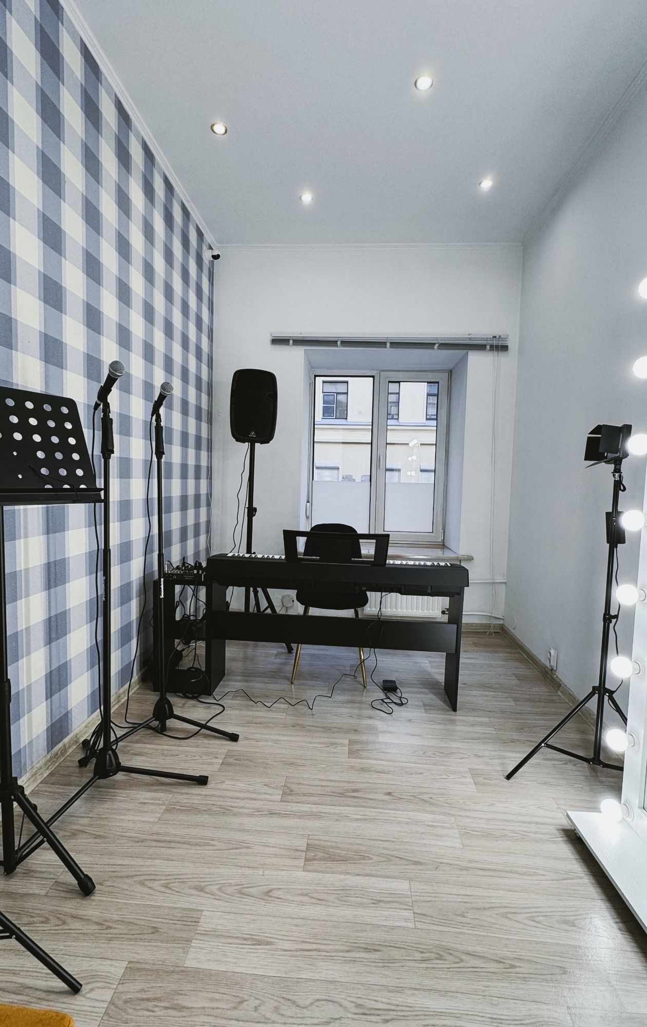 Класс оснащен новой аппаратурой для удобства и качества занятий: - Электронное фортепиано Yamaha P45, которое идеально подходит для вокальных упражнений и аккомпанемента. - Два динамических микрофона Shure, которые обеспечат кристально чистый звук. - Акустическая система Behringer, создающая качественное звучание для комфортных репетиций.