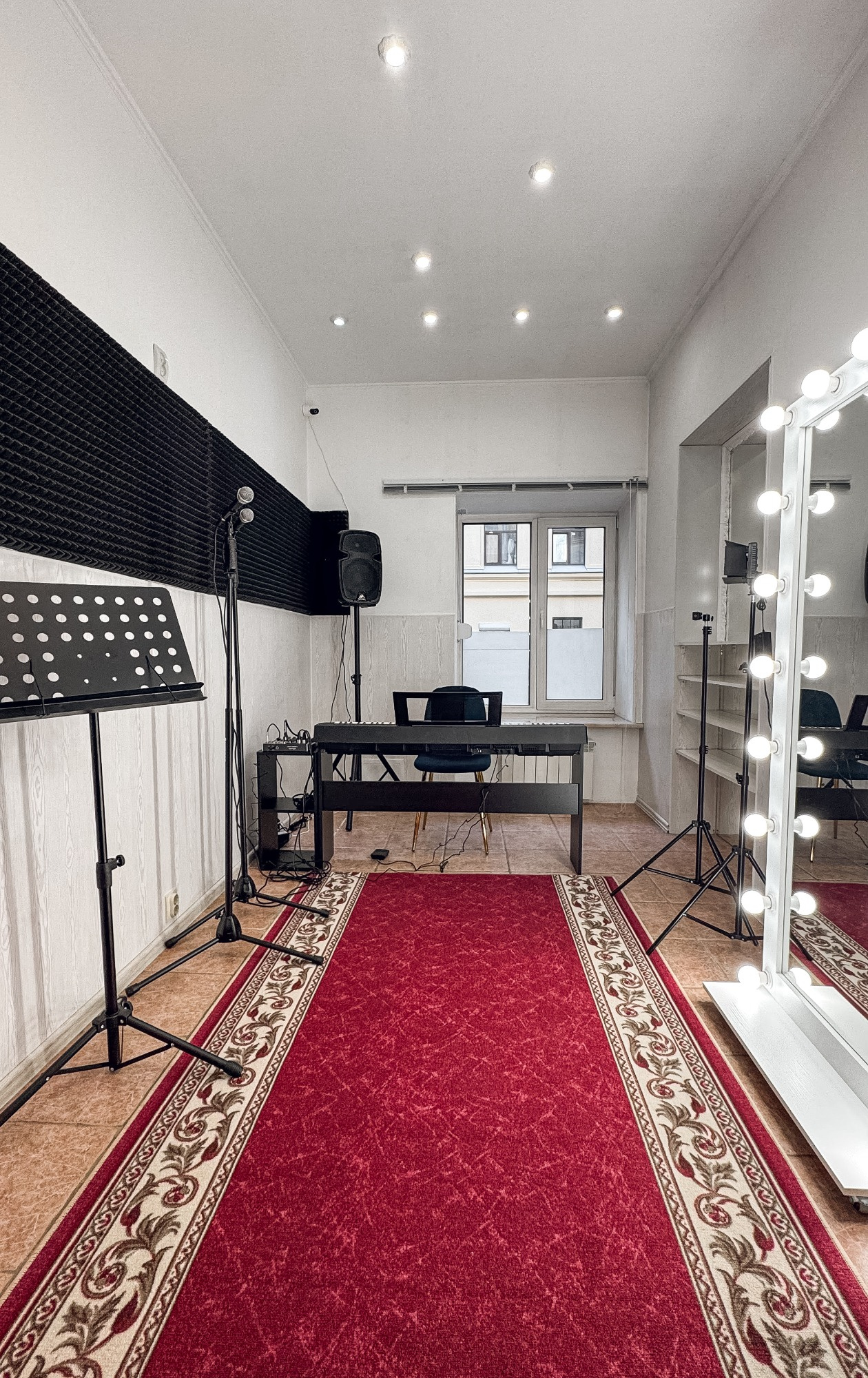 В "Географии" царит атмосфера уюта и вдохновения, а благодаря профессиональному оборудованию ваши занятия будут продуктивными и комфортными. Это отличное место для тех, кто ценит качество и тишину для работы над своим вокалом! Интерьер Зеркало Дополнительная подсветка интерьера Не подвал Окна
