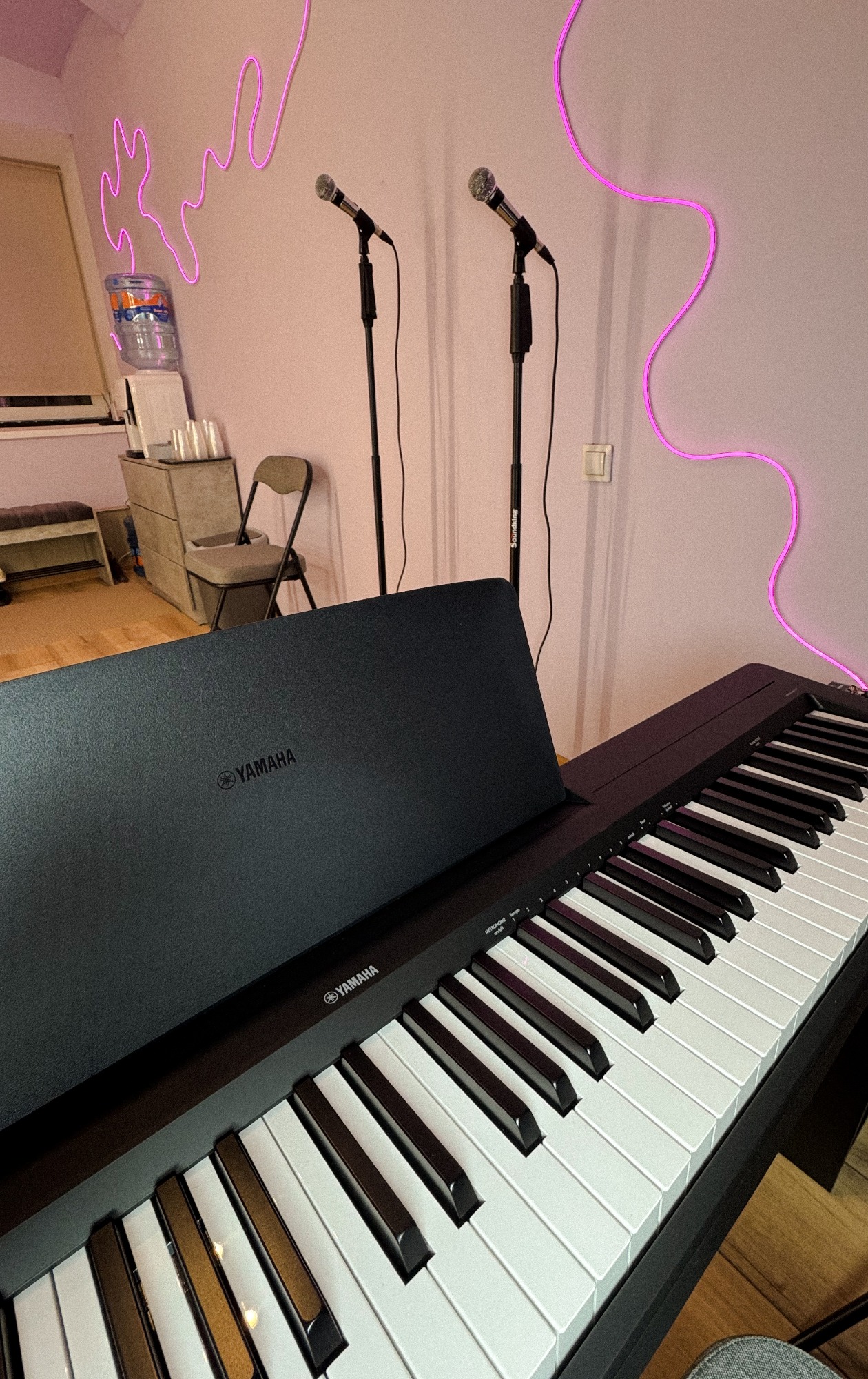 - Штатив для телефона с держателем - Световая лампа на штативе для красивых фотографий - Большое зеркало с лампочками - Кулер с горячей и холодной водой, чай, вкусняшки - Тапочки разных размеров - Санузел отдельный - WiFi - Зарядное устройство для смартфона - Пюпитр для нот - Удобные телескопические стойки для микрофона - Вентилятор, обогреватель воздуха - Влажные салфетки для рук