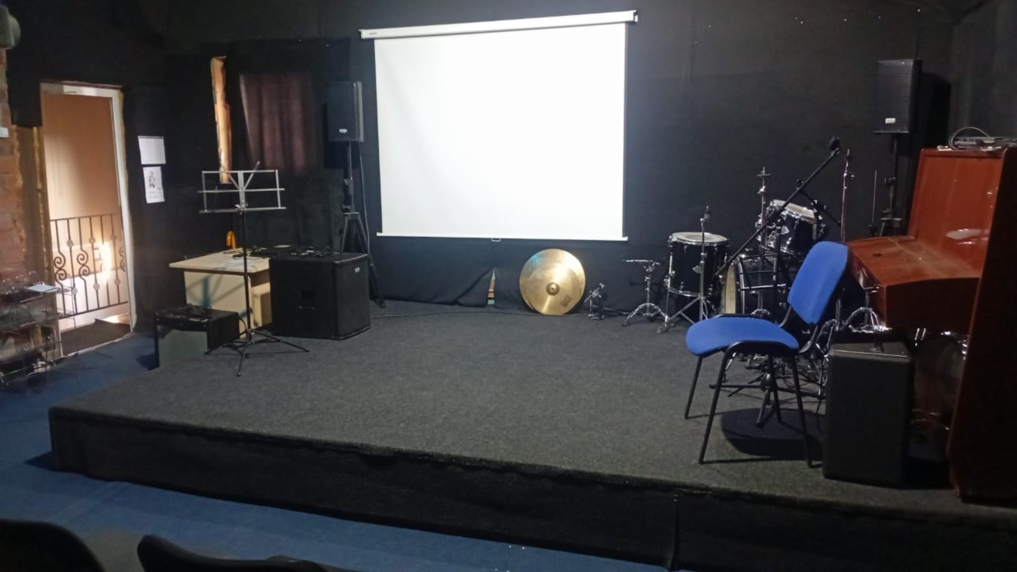 О площадке Актовый зал студии полностью соответствует требованиям СанПиН для проведения занятий по обучению игре на музыкальных инструментах и вокалу. Помещение имеет достаточное и правильно организованное освещение, обеспечивая комфортные и безопасные условия для работы музыкантов.