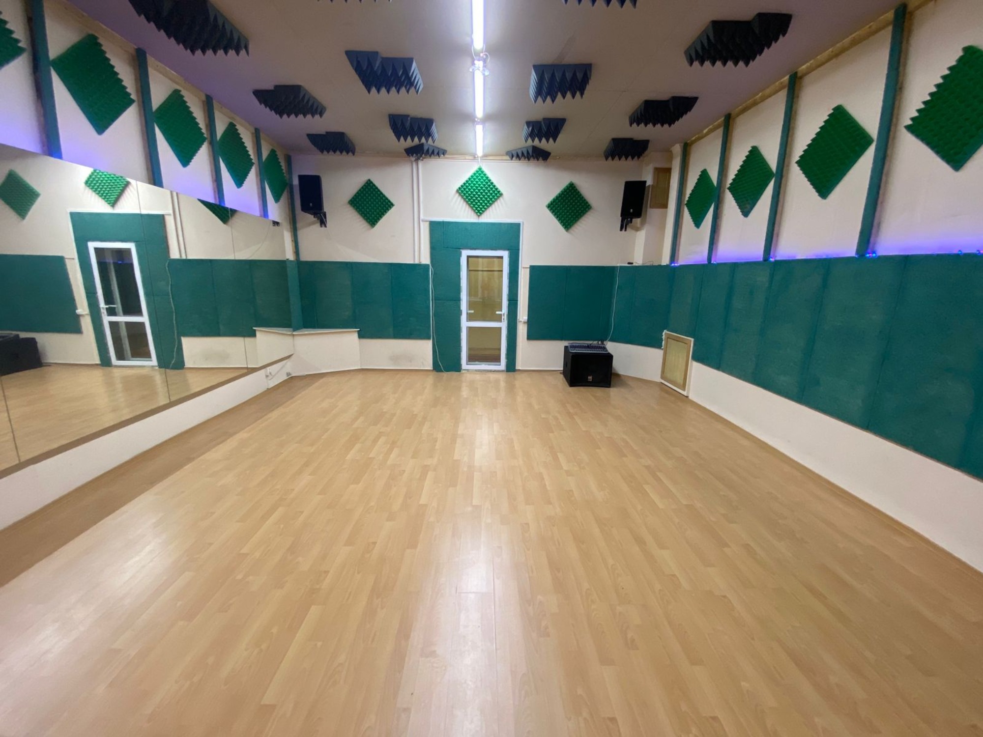 2 зала по 40м2 (BLUES, FUSION) - ПЕРВЫЙ ЭТАЖ С ОКНАМИ; - потолок 3,5м; - зеркало во всю стену (6 и 7,5м); - дубовый паркет (FUSION);