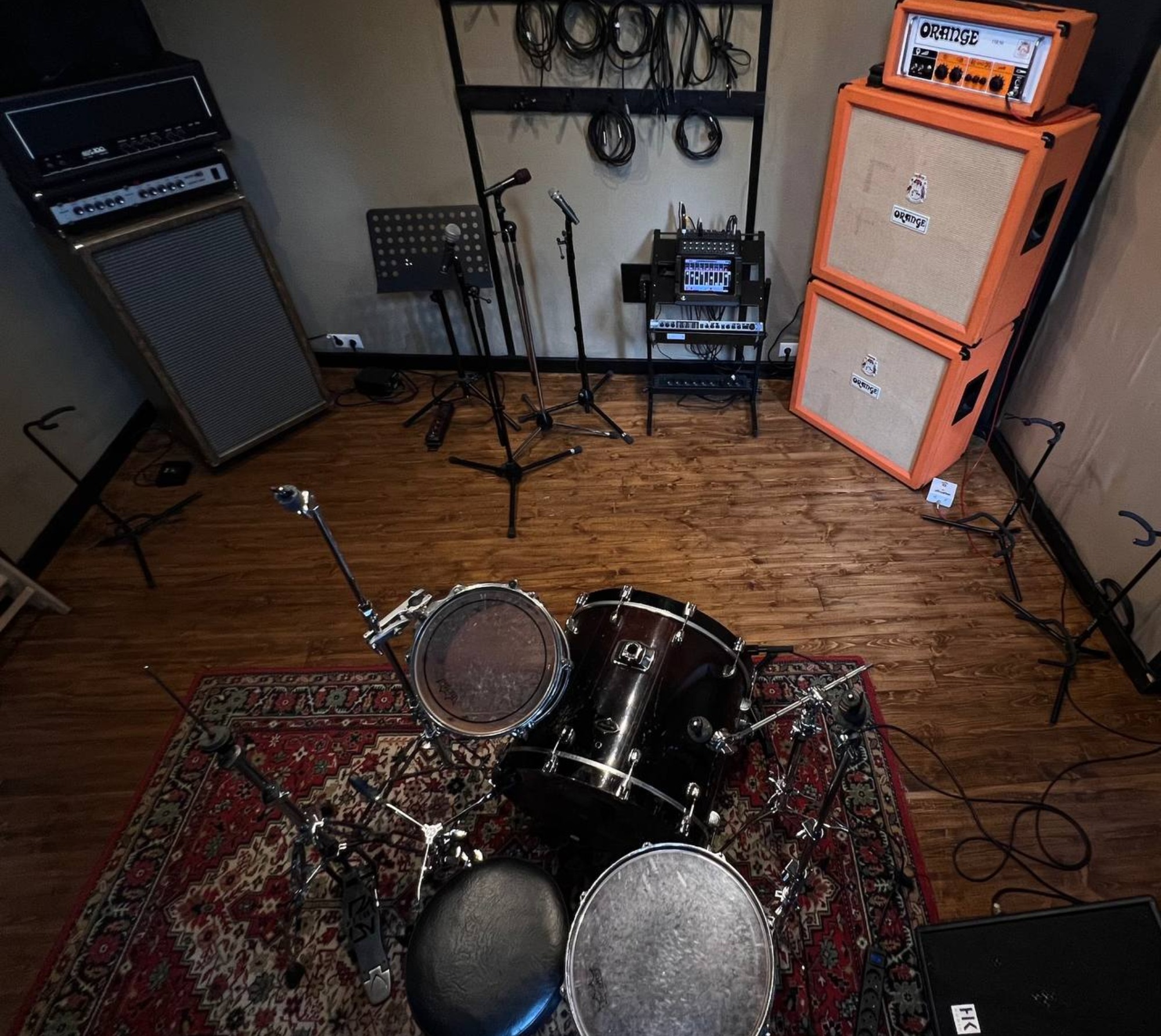 О площадке Светлая, просторная комната с располагающей атмосферой и всем необходимым оборудованием. Позволяет комфортно разместиться большому коллективу, чтобы провести репетицию или запись. А подключить и настроить любой сэтап мы всегда с радостью поможем.