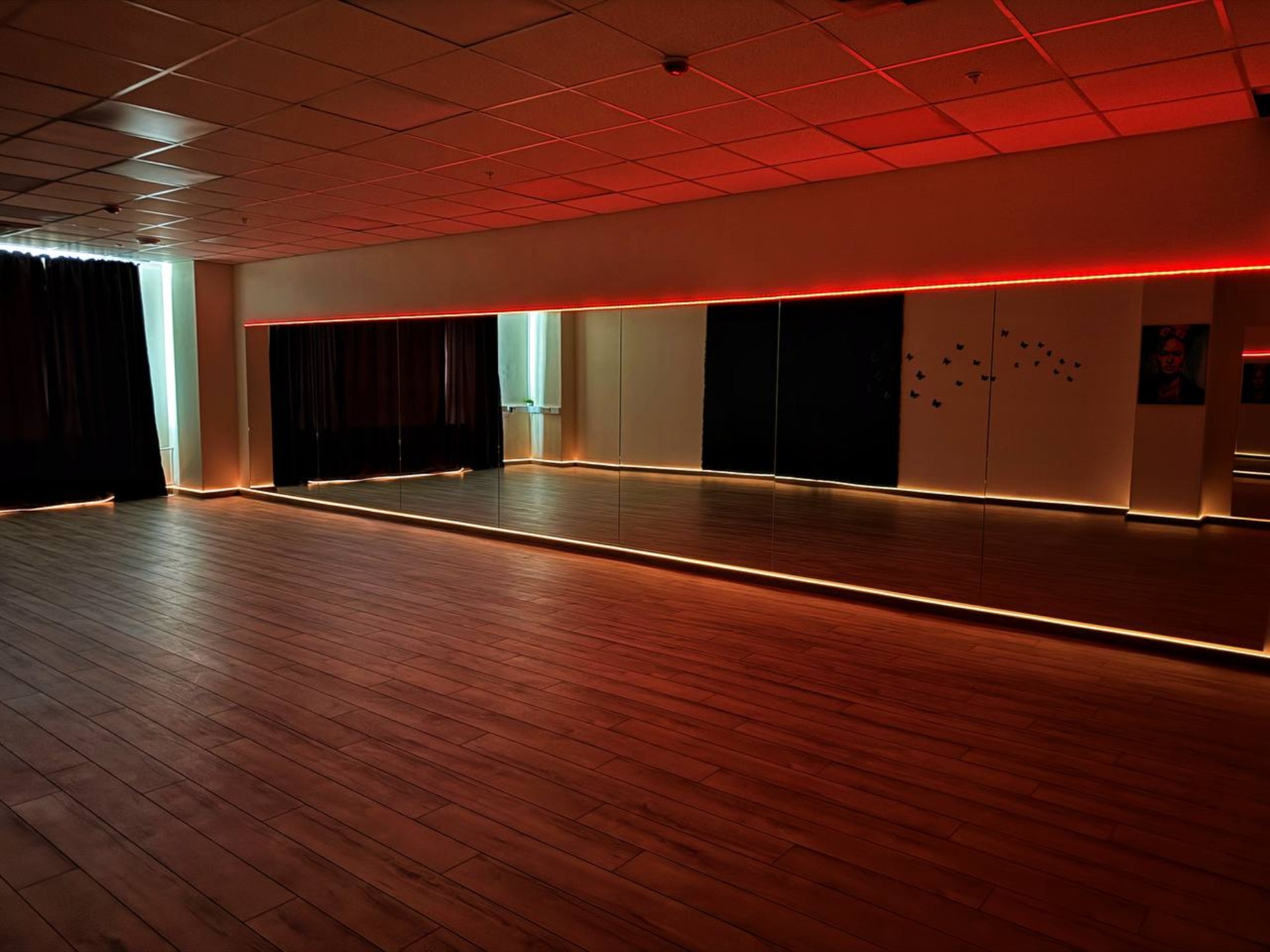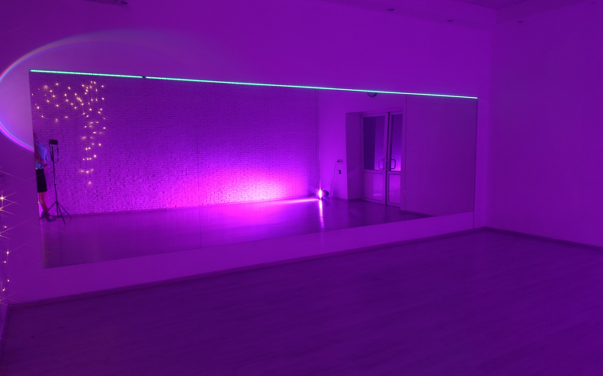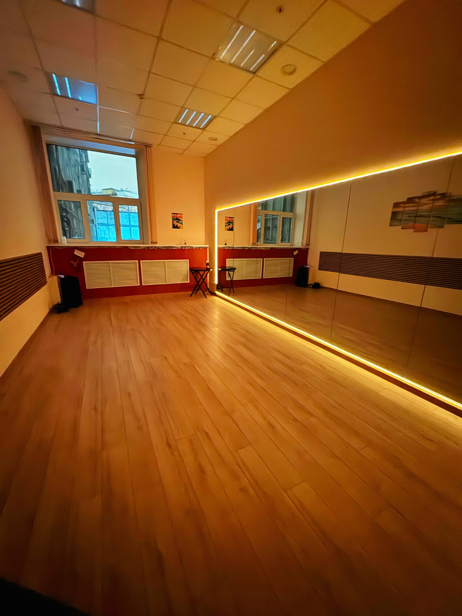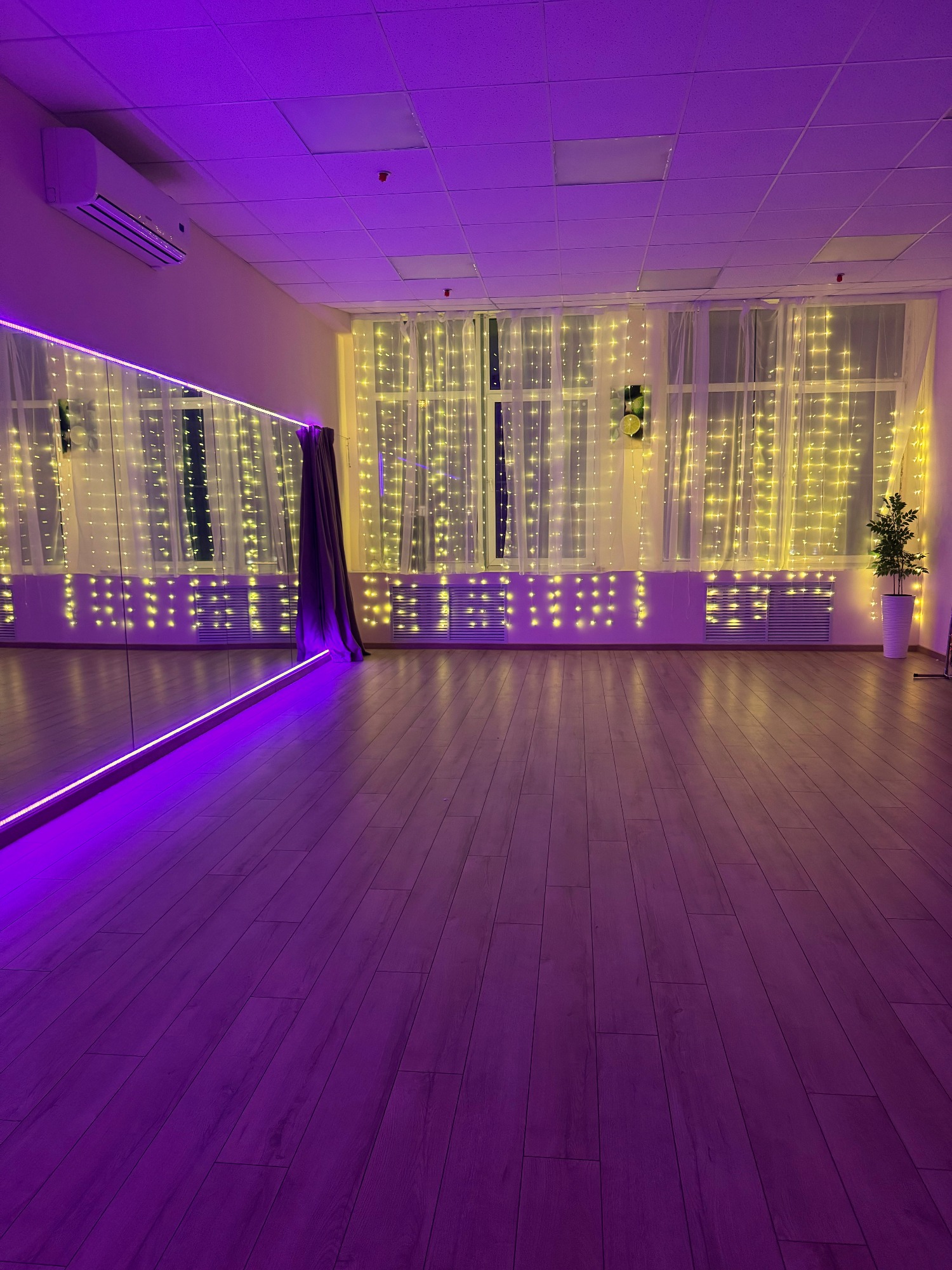 О площадке Максимально уютный зал для твоих персональных уроков или минигрупп до 5 человек. Зал находится на третьем этаже с окном, благодаря чему здесь всегда светло и приятно. В помещении установлена современная приточно-вытяжная вентиляция и кондиционер, что обеспечивает комфортную температуру и свежий воздух в любое время года. Для создания особой атмосферы зал оборудован неоновой подсветкой. В данный момент интерьер украшен в новогоднем стиле, что добавляет уюта и праздничного настроения. Пол танцевальный ламинат. Этот зал идеально подойдёт для продуктивных и вдохновляющих занятий!
