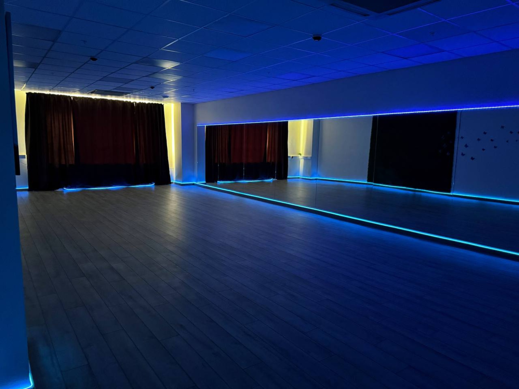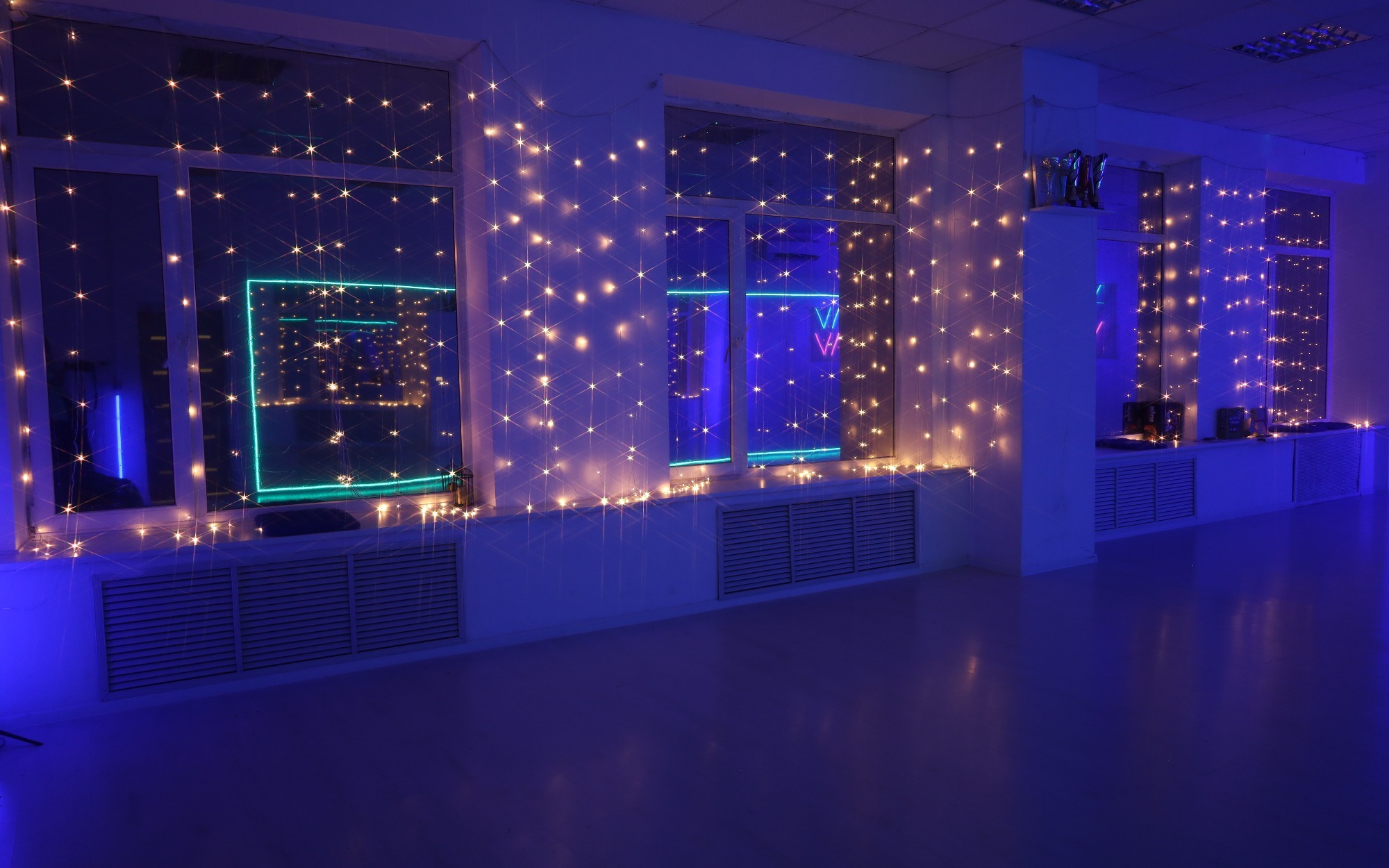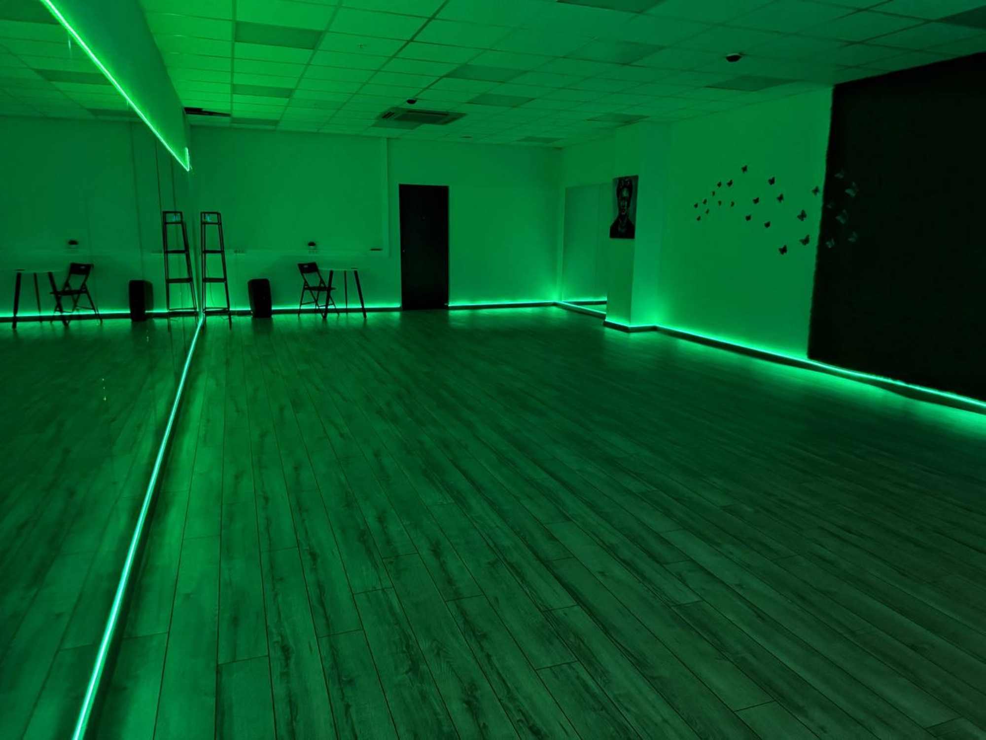 О площадке Максимально уютный зал для твоих персональных уроков или минигрупп до 5 человек. Зал находится на третьем этаже с окном, благодаря чему здесь всегда светло и приятно. В помещении установлена современная приточно-вытяжная вентиляция и кондиционер, что обеспечивает комфортную температуру и свежий воздух в любое время года. Для создания особой атмосферы зал оборудован неоновой подсветкой. В данный момент интерьер украшен в новогоднем стиле, что добавляет уюта и праздничного настроения. Пол танцевальный ламинат. Этот зал идеально подойдёт для продуктивных и вдохновляющих занятий!