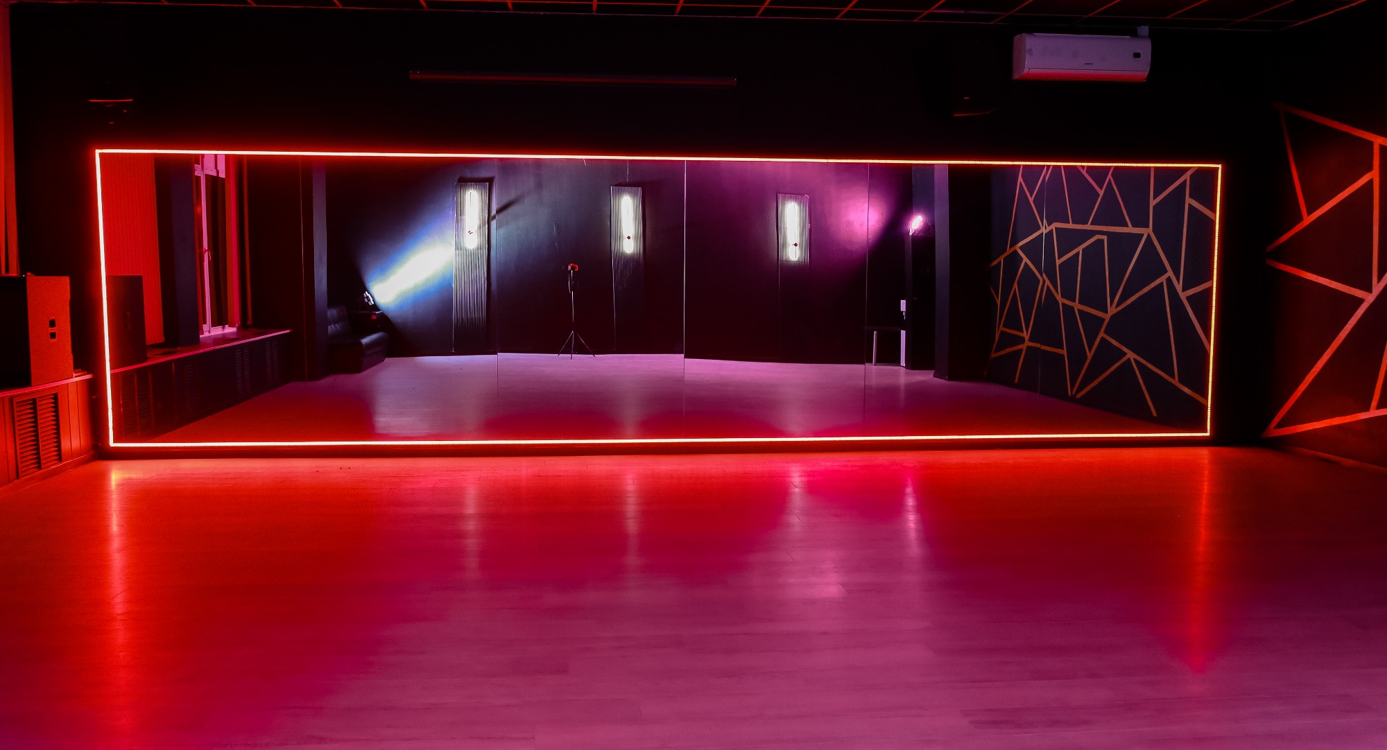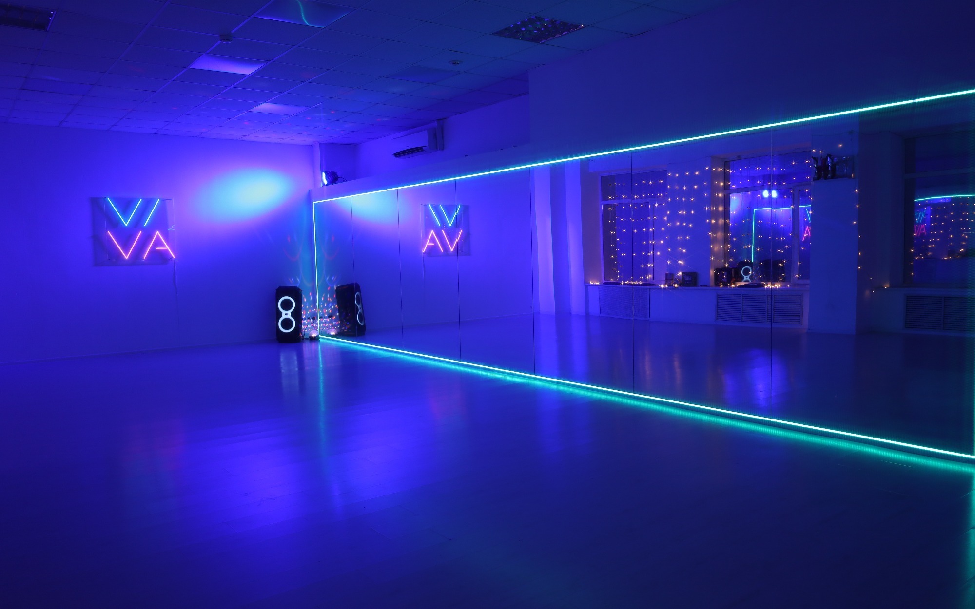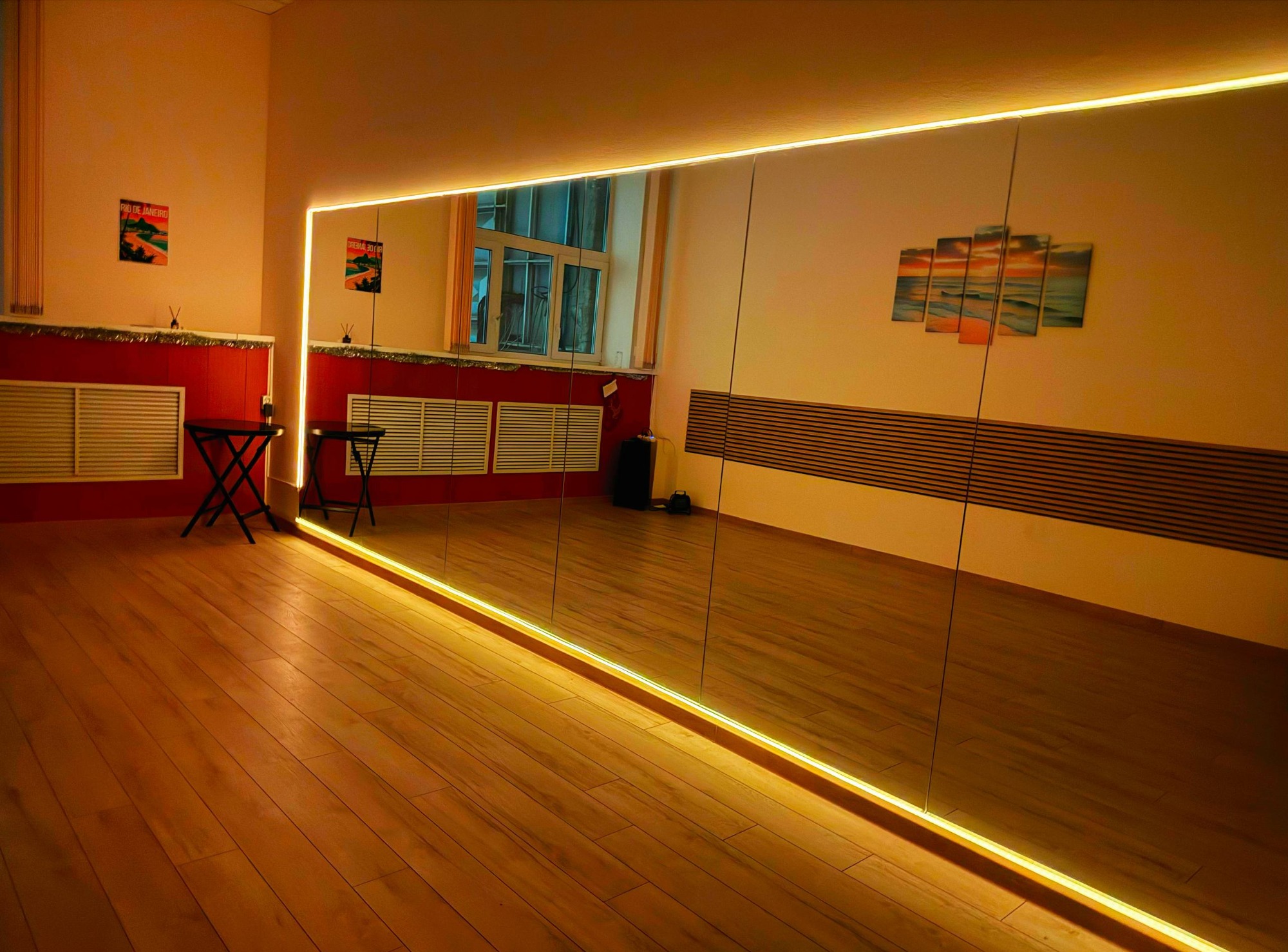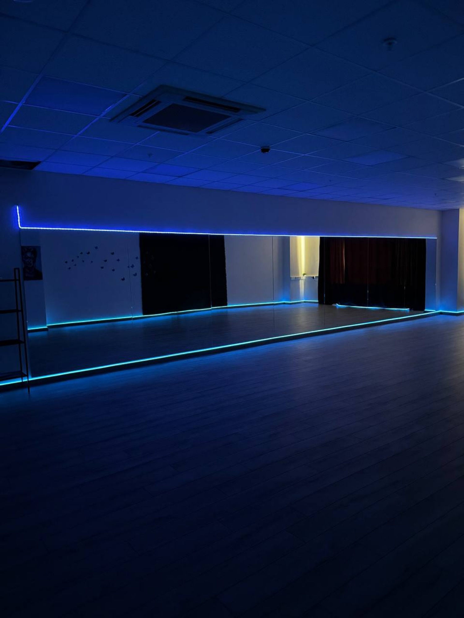 О площадке Максимально уютный зал для твоих персональных уроков или минигрупп до 5 человек. Зал находится на третьем этаже с окном, благодаря чему здесь всегда светло и приятно. В помещении установлена современная приточно-вытяжная вентиляция и кондиционер, что обеспечивает комфортную температуру и свежий воздух в любое время года. Для создания особой атмосферы зал оборудован неоновой подсветкой. В данный момент интерьер украшен в новогоднем стиле, что добавляет уюта и праздничного настроения. Пол танцевальный ламинат. Этот зал идеально подойдёт для продуктивных и вдохновляющих занятий!