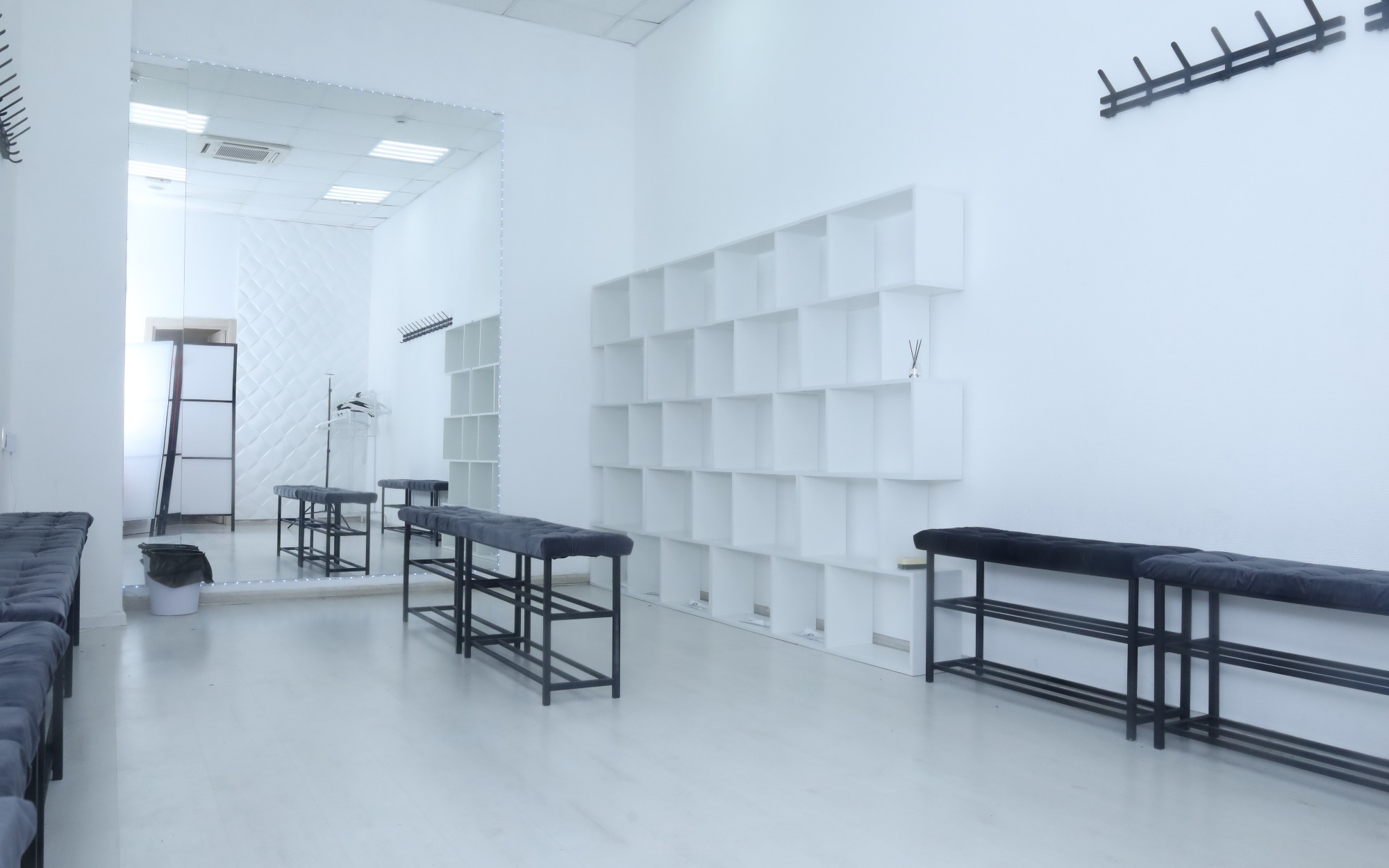 Удобства: - свежий ремонт - высокие потолки, не подвал (3 этаж) - парковка городская от 80р - кондиционер - кулер - раздевалки для парней и девушек - раздельные уборные и душевые - колонки JBL, bluetooth - неоновые подсветки, световые лампы под запрос - коврики и кубики, под запрос (коврики - 100р, кубики - 100р) - станок для балета, под запрос (300 рублей)