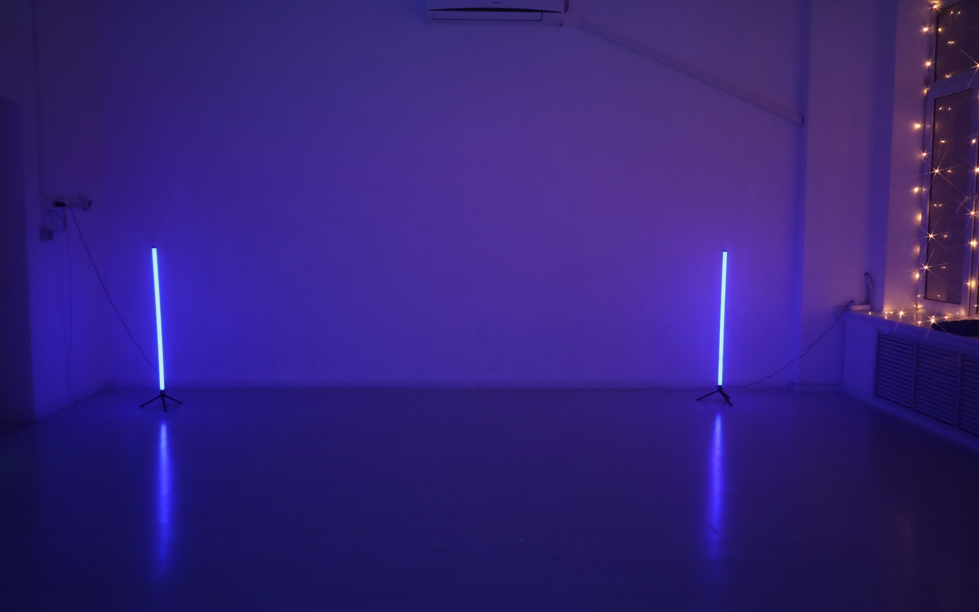 О площадке - Светлый зал с красивым освещением и неоновой подсветкой - Высокие потолки, не подвал! Окна во всю стену - Танцевальный ламинат - Музыкальное оборудование с подключением Bleutooth - есть коврики и кубики, свет, пледы (коврики - 100р, кубики - 100р, 2 софтбокса - 1000 р. на 2 ч) - станок для балета (входит в стоимость аренды зала) - кондиционер