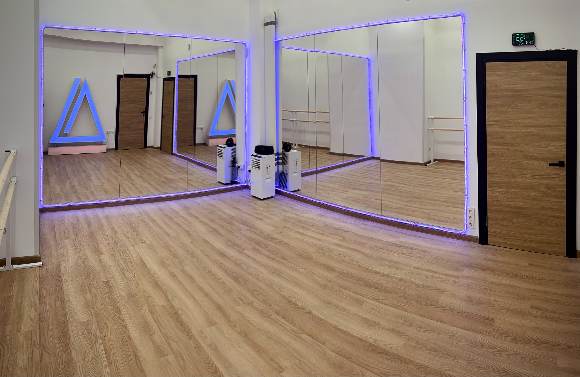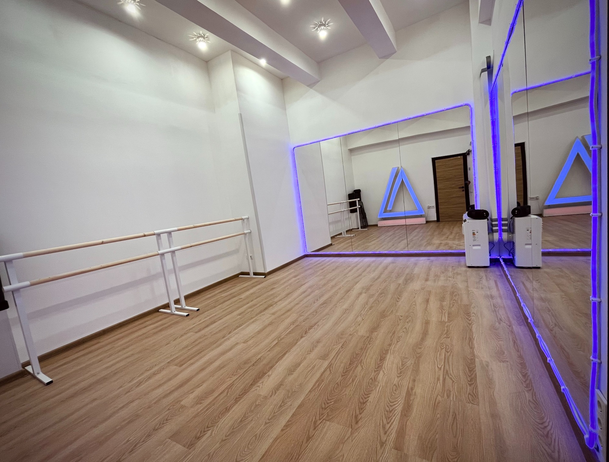 Танцевальный зал сдается в аренду для регулярных и разовых занятий – отлично подходит для тренировок, индивидуальных уроков, репетиций и мастер-классов. Пространство зала универсально и подойдет для различных направлений: от танцев и йоги до силовых тренировок.