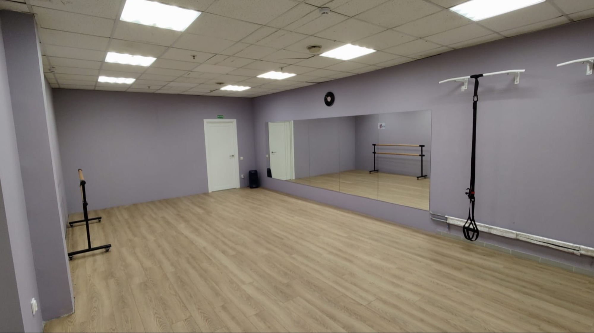 О площадке Зал Лавандовый оснащён всем необходимым для проведения занятий по хореографии, растяжке, фитнесу и другим видам тренировок, требующим зеркального контроля и опорного оборудования.