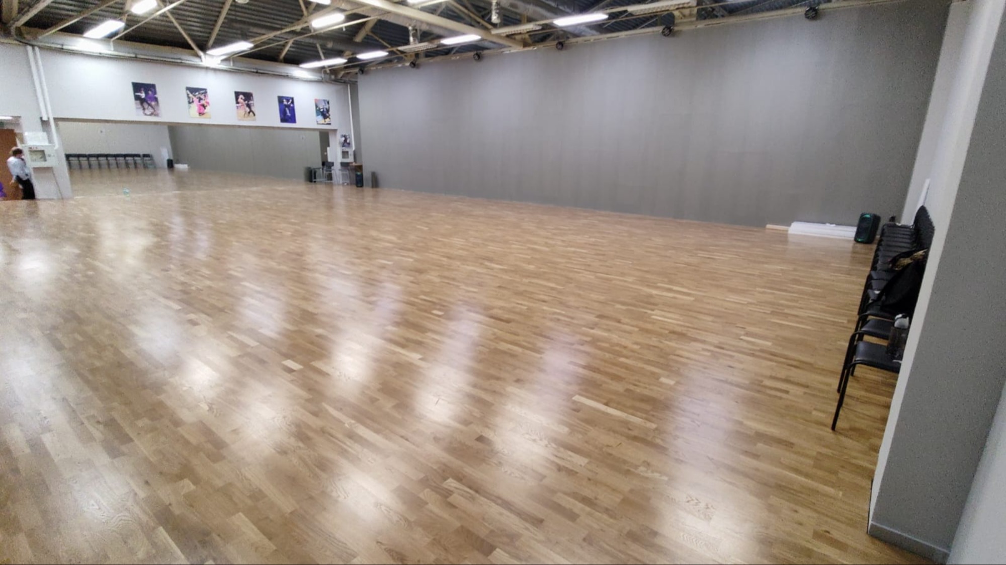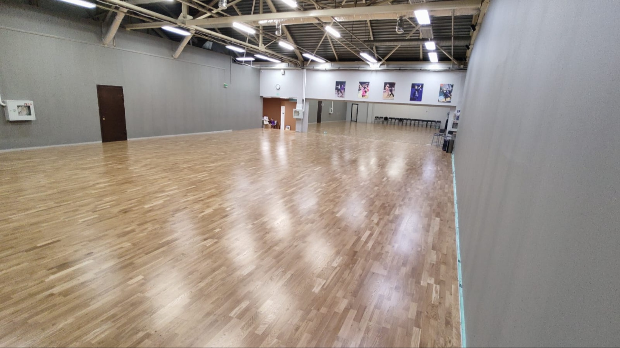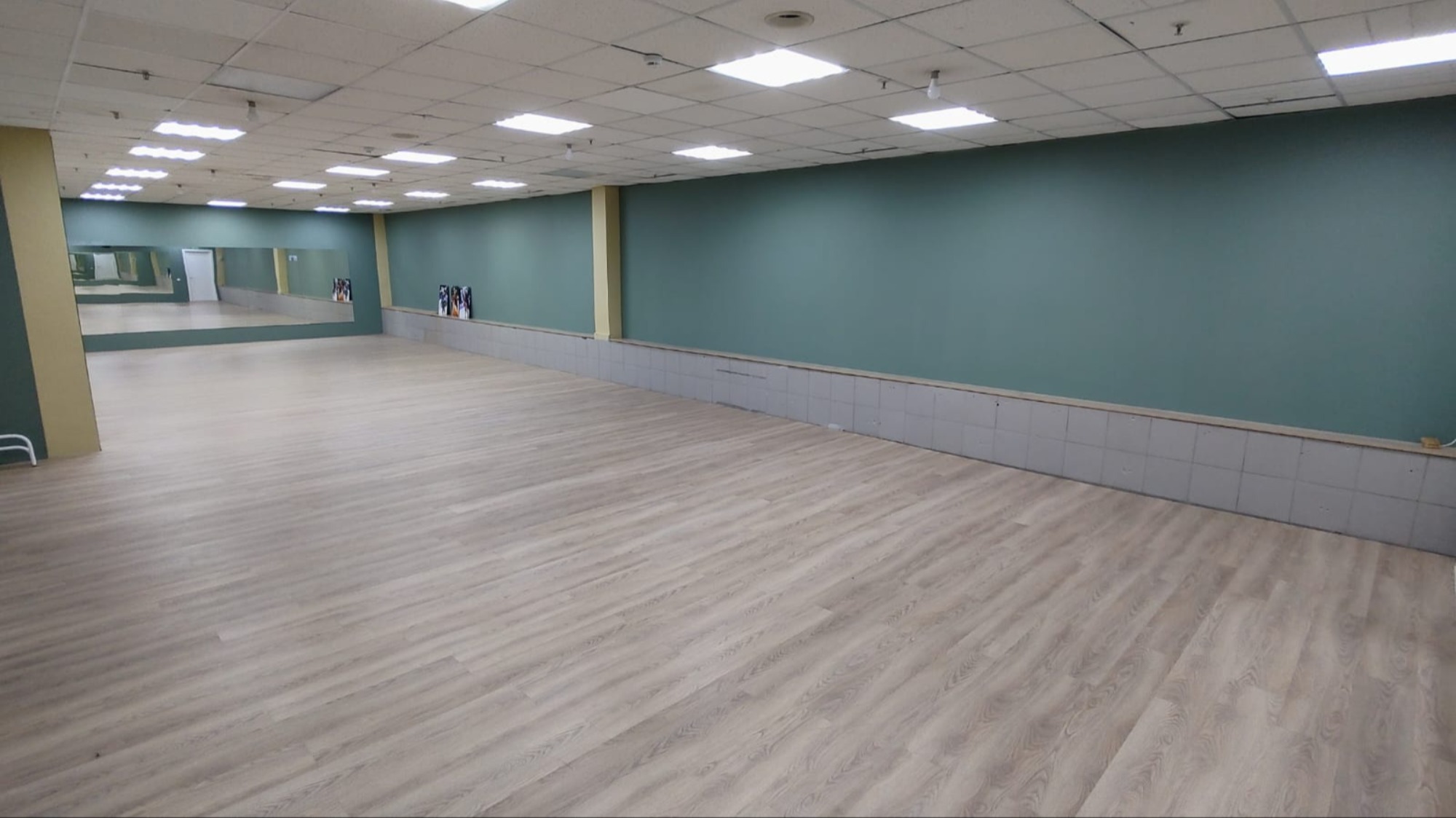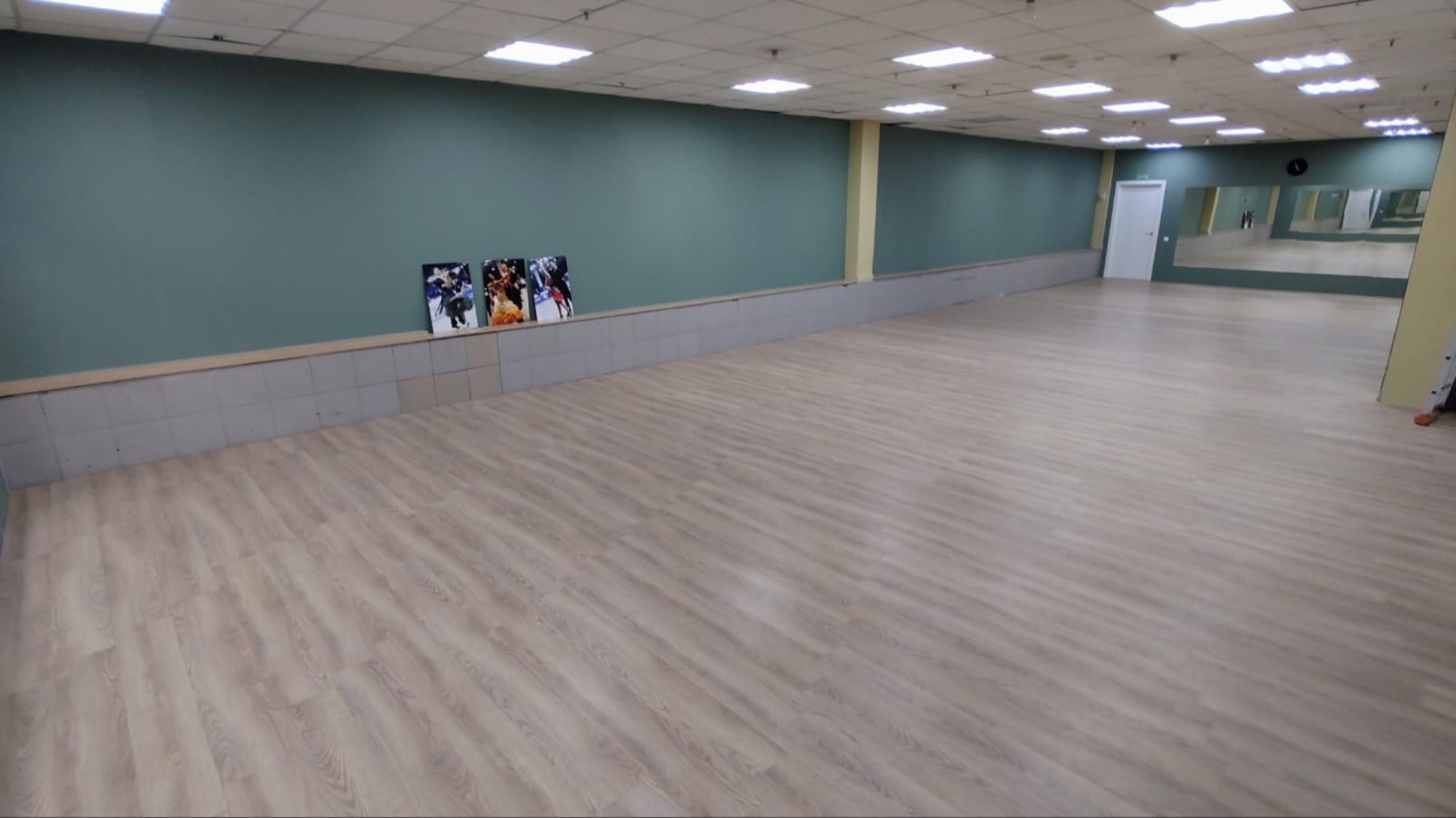 В помещении установлен ламинированный пол, обеспечивающий комфортное и безопасное движение. По одной из стен размещены зеркала, что позволяет участникам отслеживать технику исполнения упражнений.
