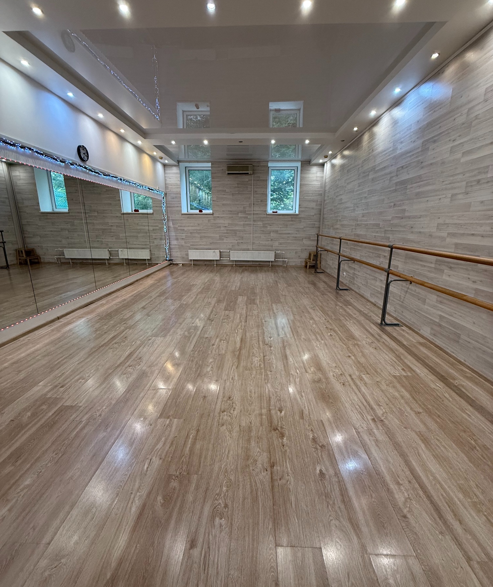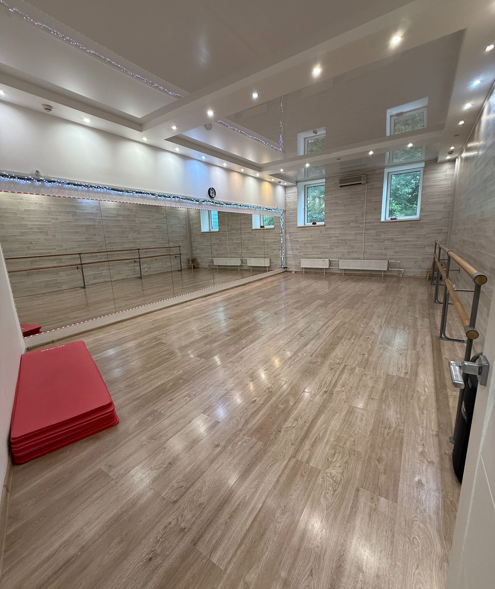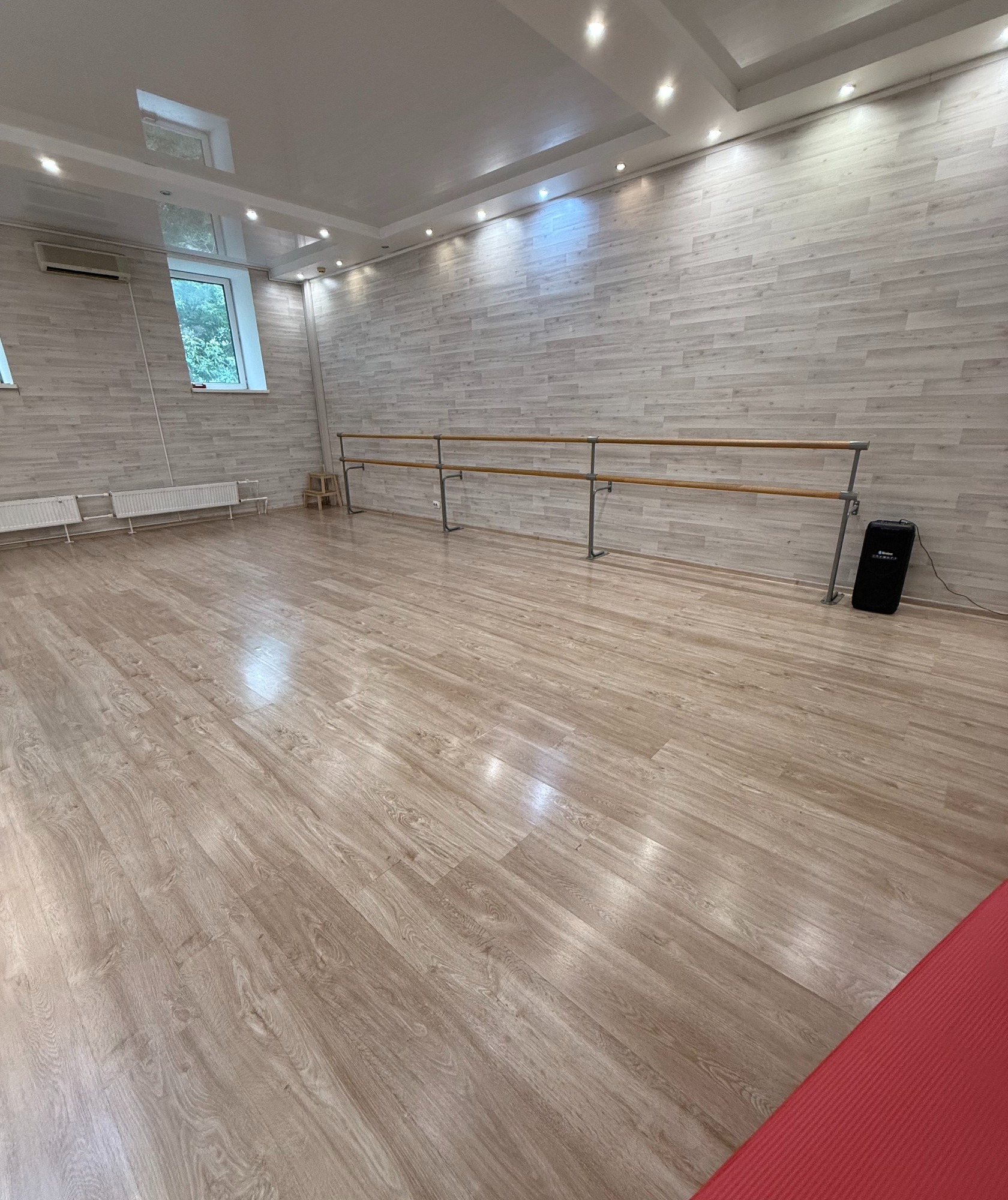 О площадке Танцевальный зал 60 м² — просторное и светлое пространство для занятий танцами, растяжкой и силовыми тренировками — Балетный станок на 9–10 человек — Музыкальный центр включён в стоимость — Коврики и дополнительный инвентарь предоставляются за отдельную плату — Вместимость зала — 10–12 человек, в зависимости от формата занятий