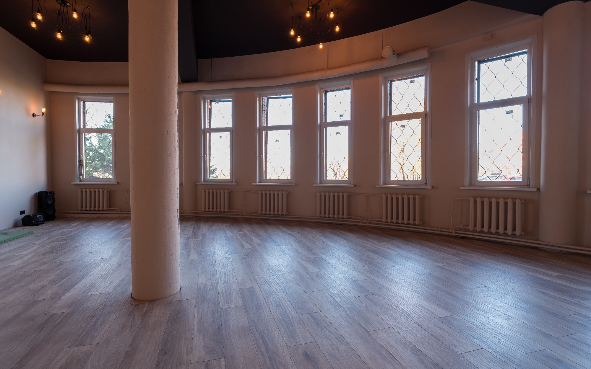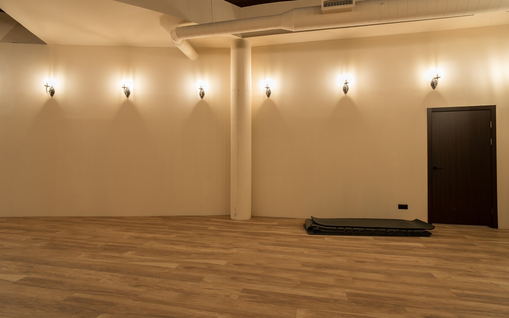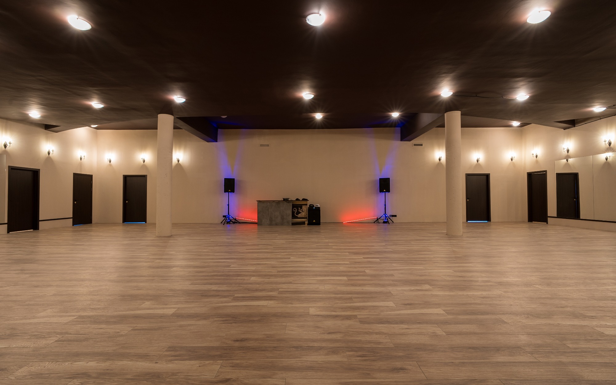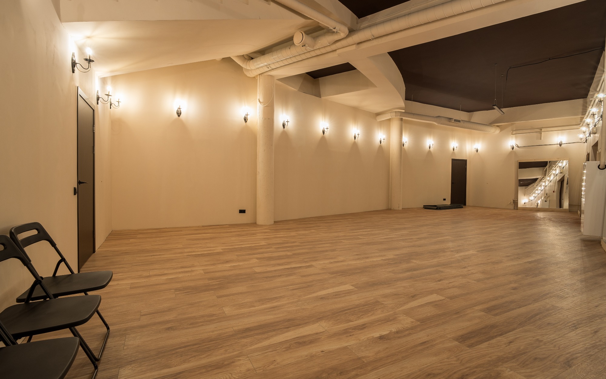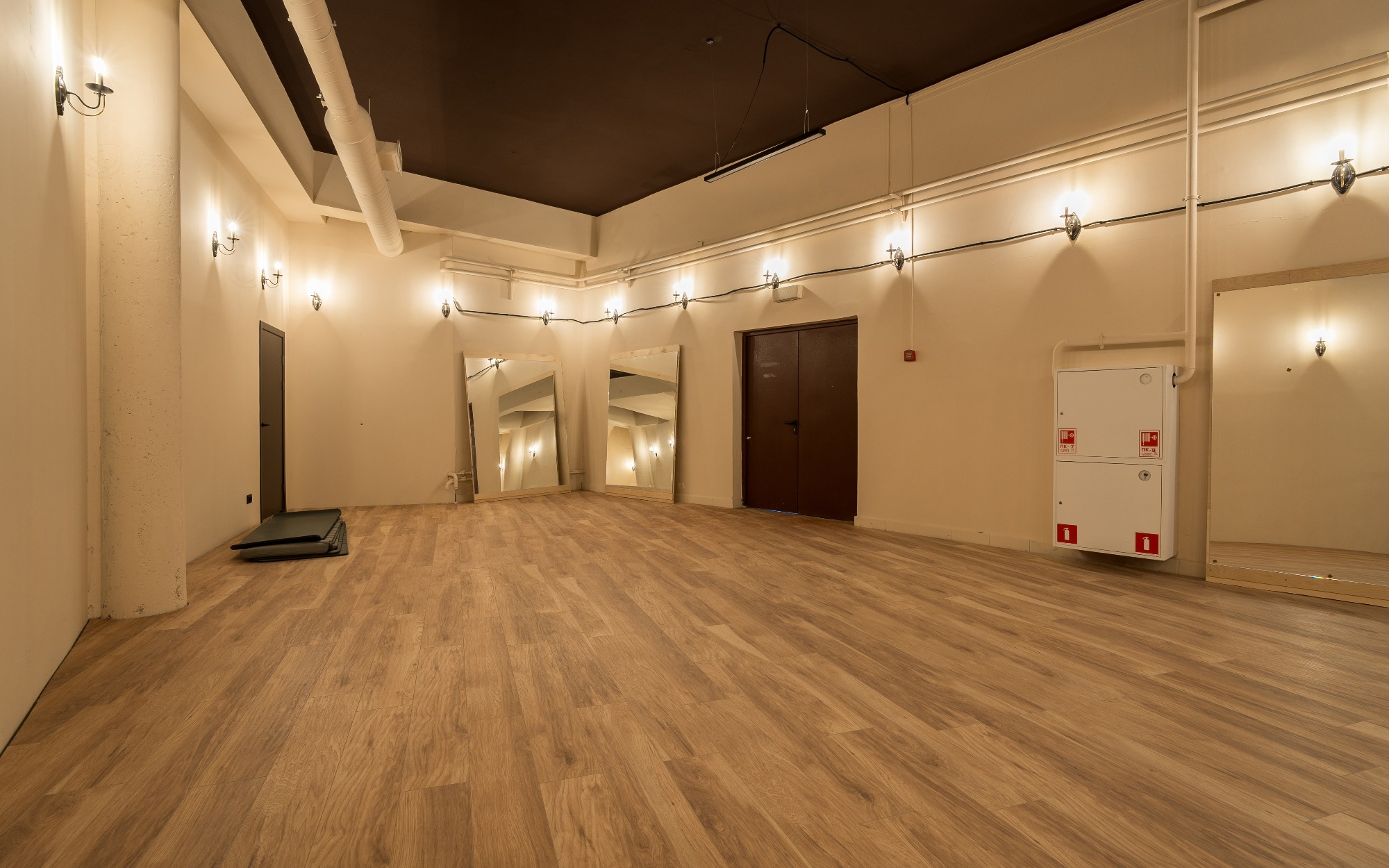 О площадке Просторный зал площадью 300 м² — идеальное место для танцев и мероприятий. Вместимость до 250 человек позволяет проводить как индивидуальные, так и крупные групповые занятия. Бежевая цветовая гамма интерьера создает универсальную базу, которую легко адаптировать под ваши нужды.