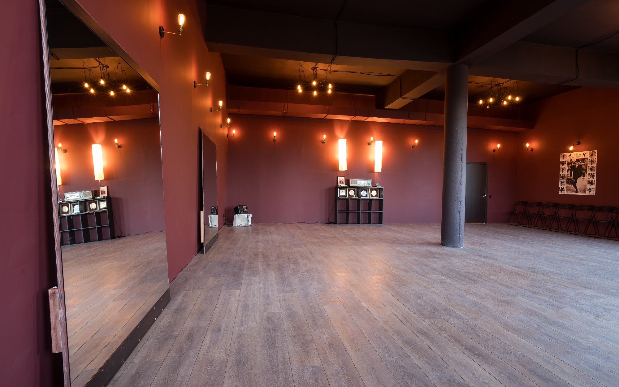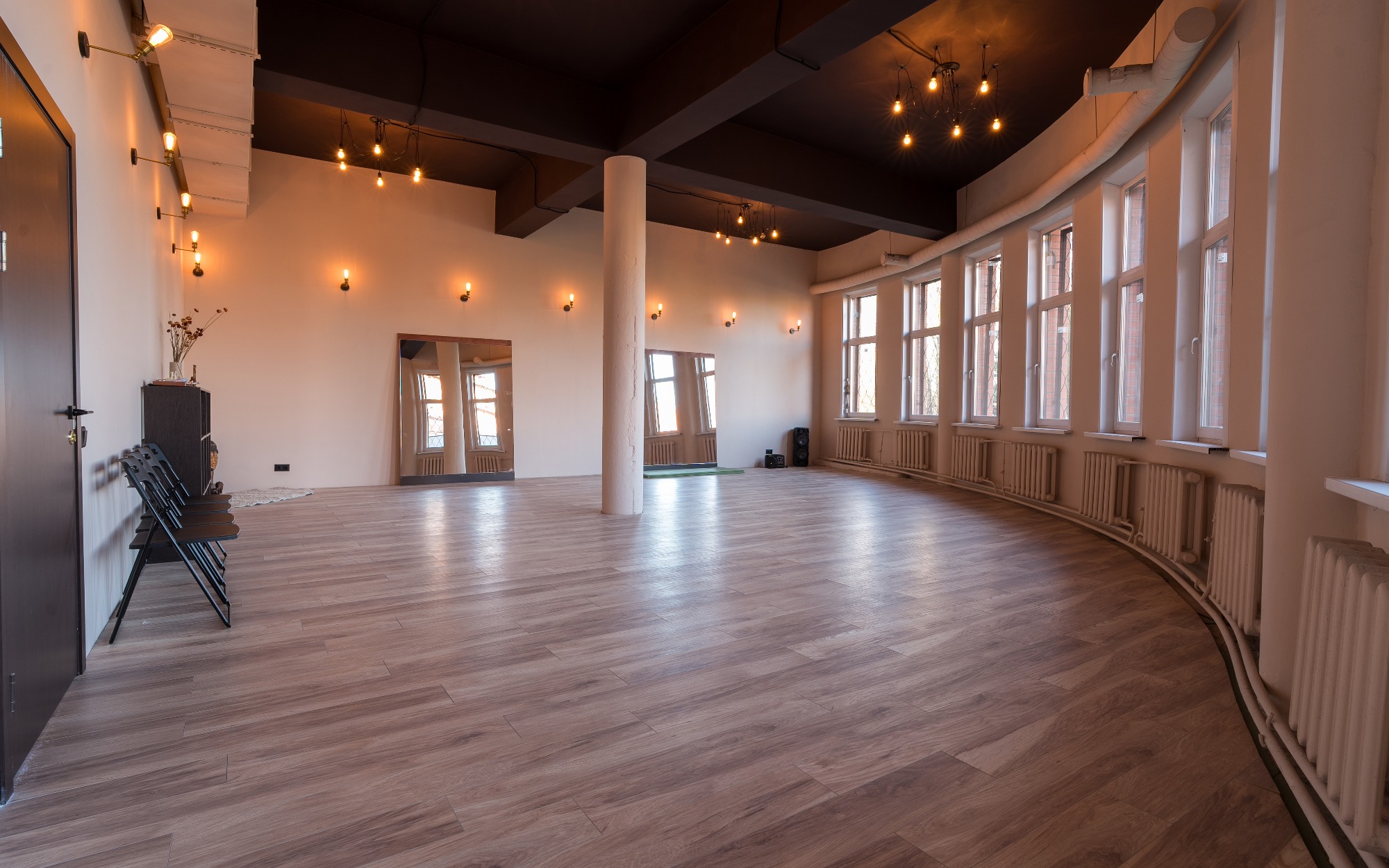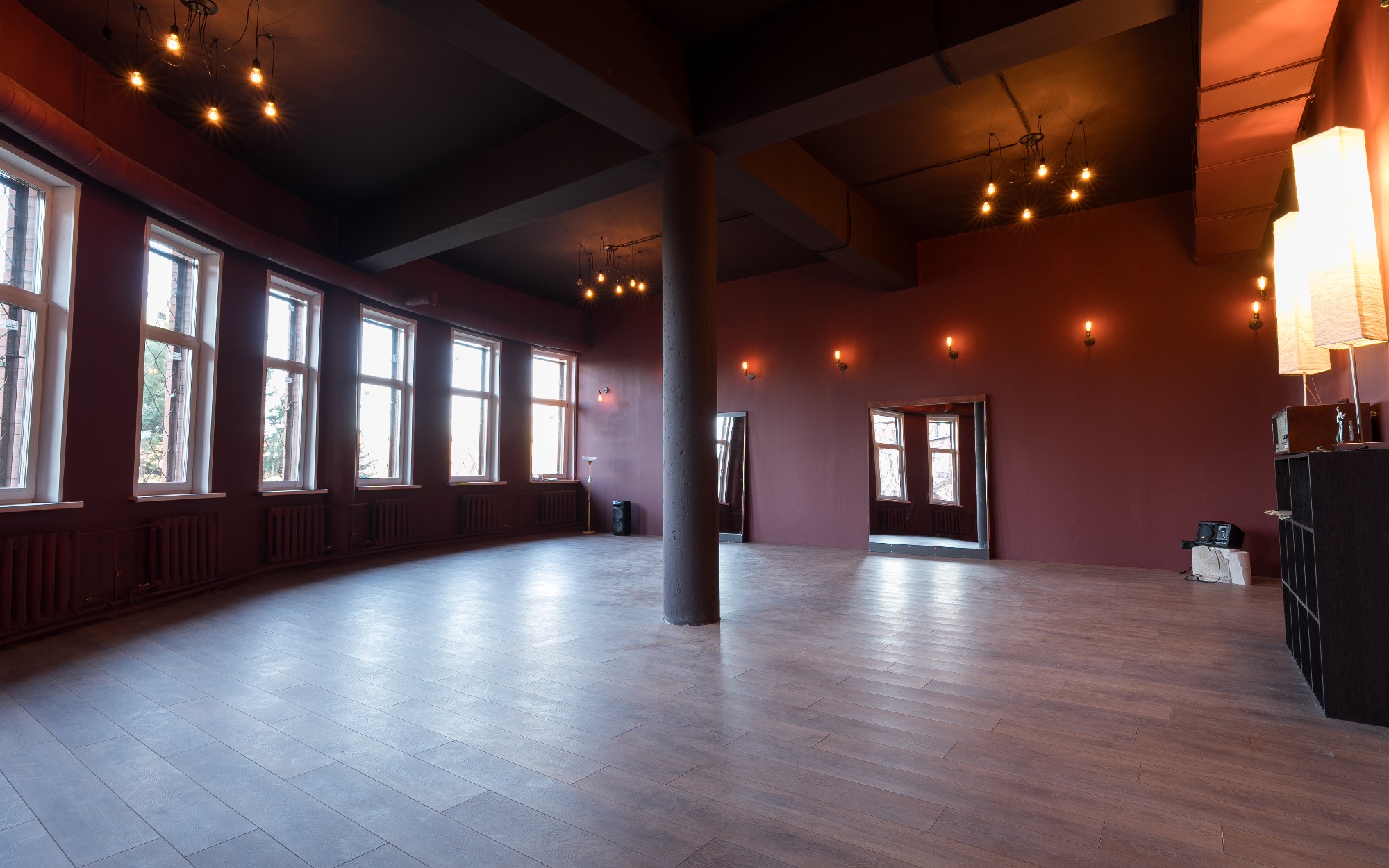 О площадке Зал "Балет" площадью 85 м² создан для тех, кто ценит атмосферу классической хореографии. Это единственный зал студии, оснащенный как стационарными, так и переносными хореографическими станками, что делает его идеальным для профессиональных и любительских занятий.