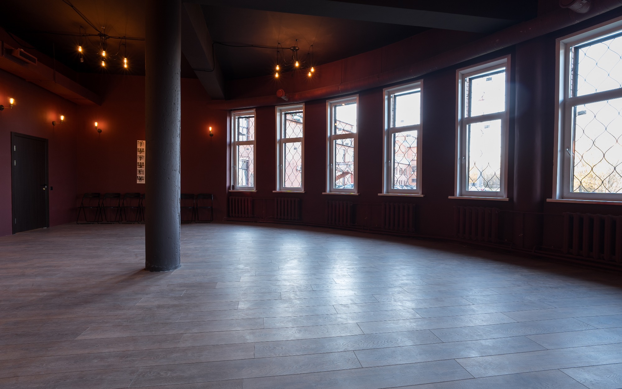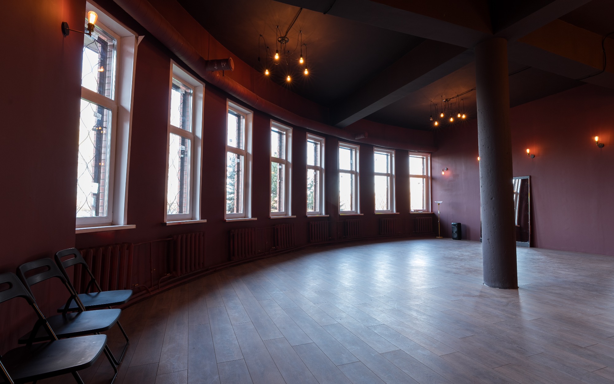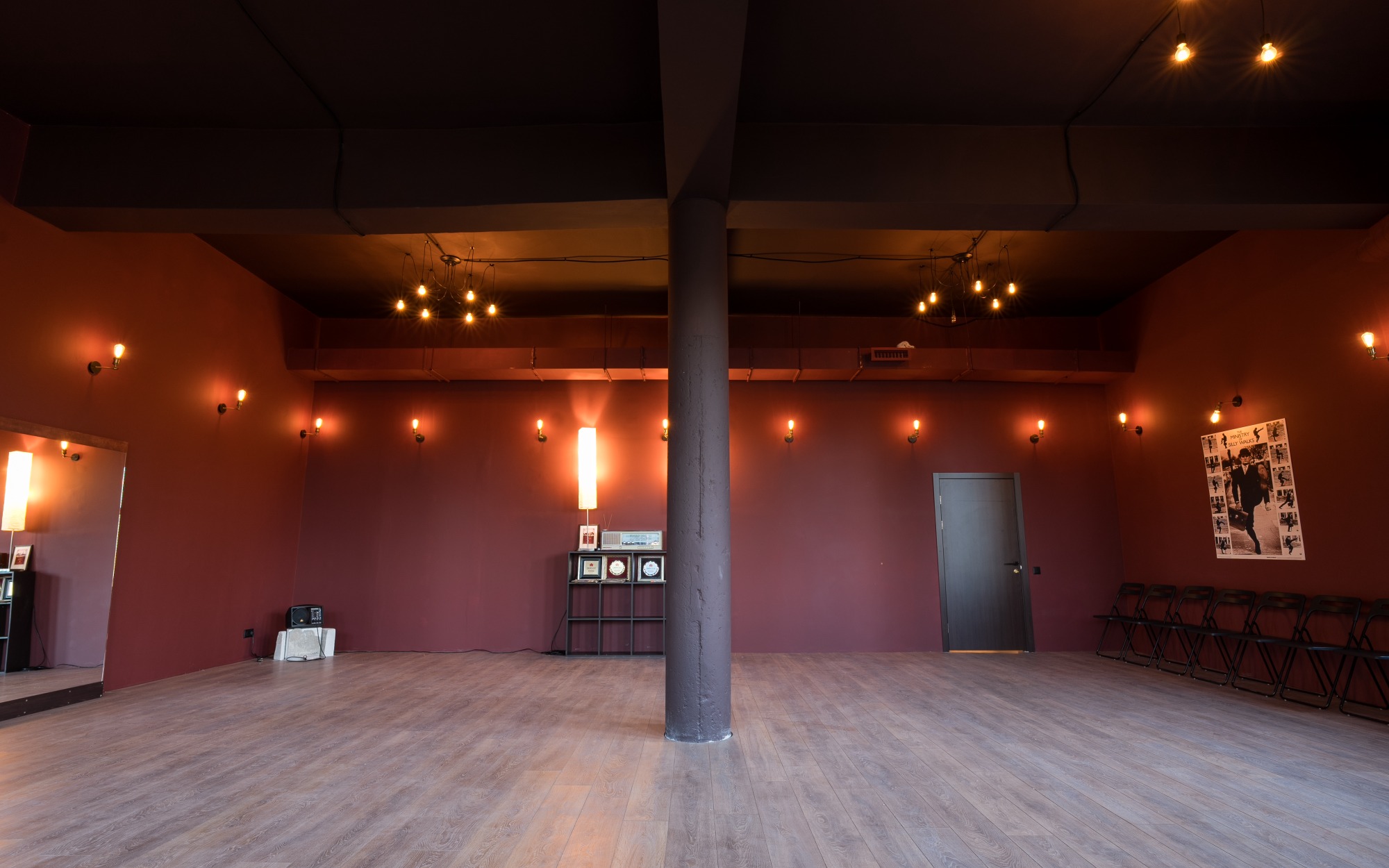О площадке Зал "Балет" площадью 85 м² создан для тех, кто ценит атмосферу классической хореографии. Это единственный зал студии, оснащенный как стационарными, так и переносными хореографическими станками, что делает его идеальным для профессиональных и любительских занятий.