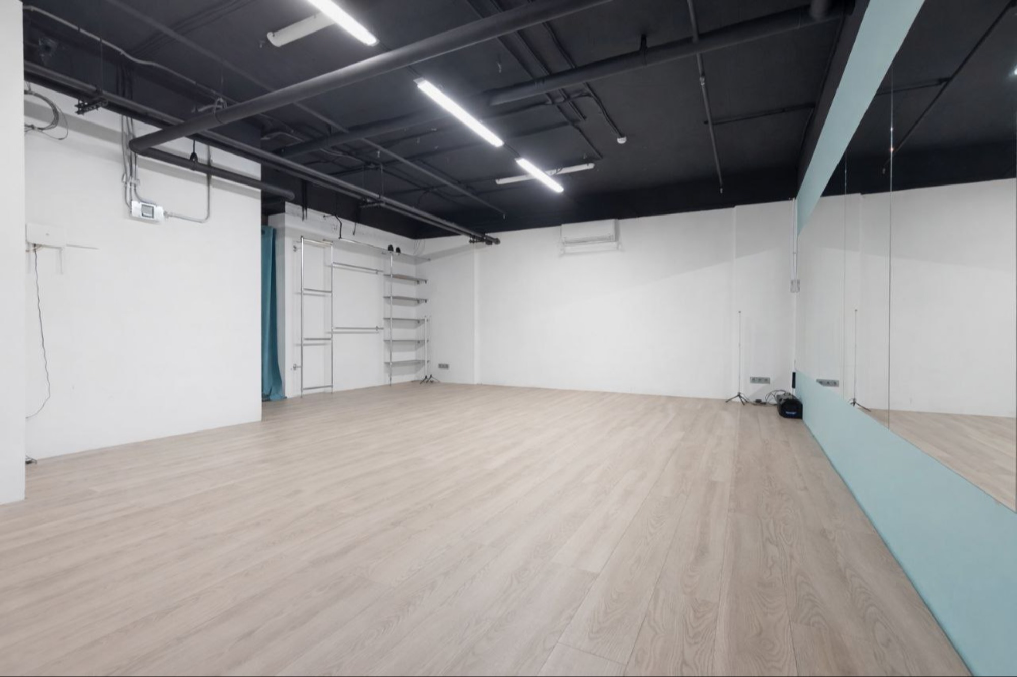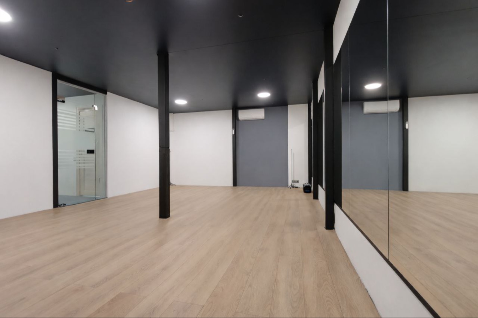 Светлый, аккуратный зал для тренировок и репетиций — комфортно для мини групп и индивидуальных занятий. Подходит для танцевальных направлений, растяжки, ОФП, мастер-классов и контент-съёмок.