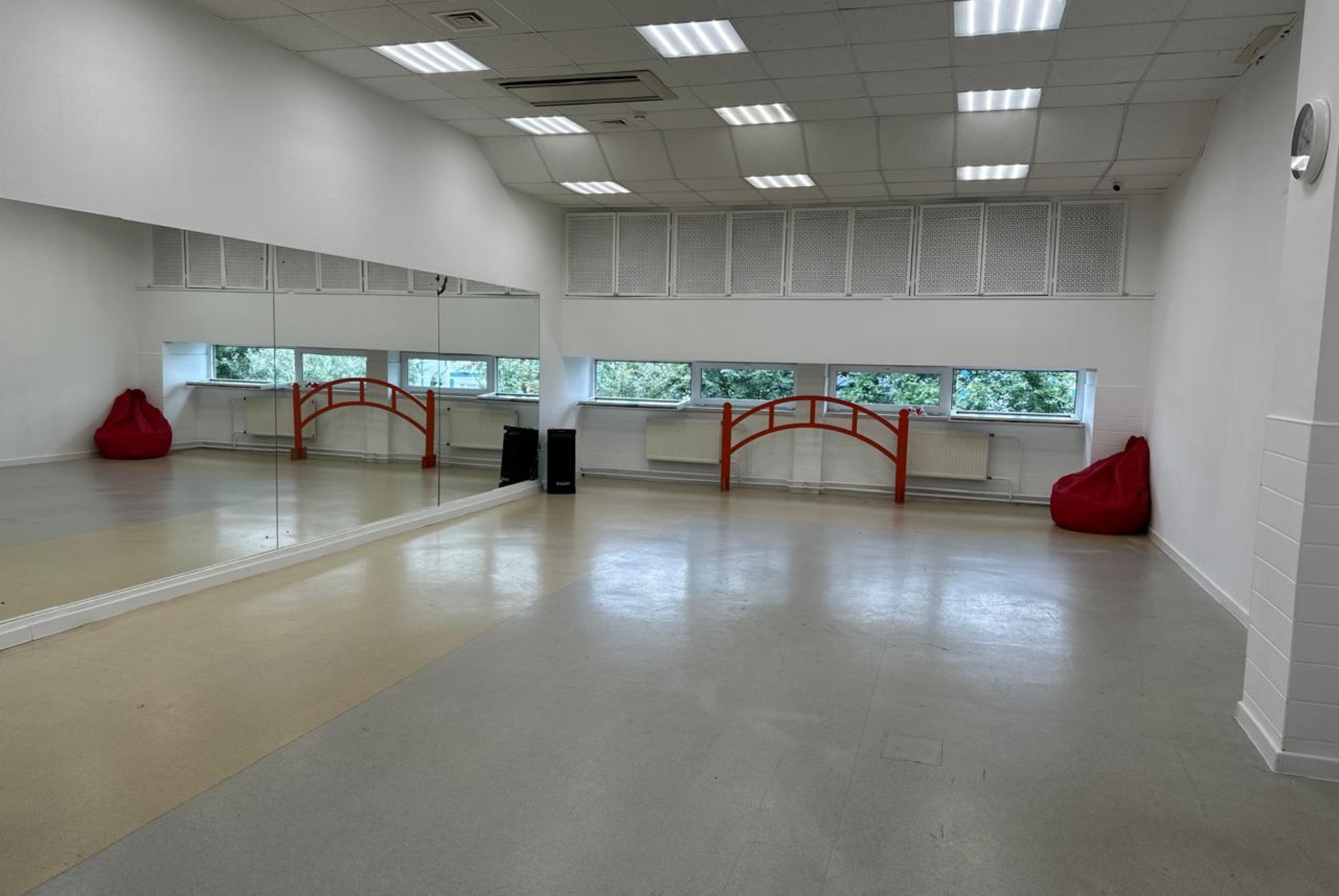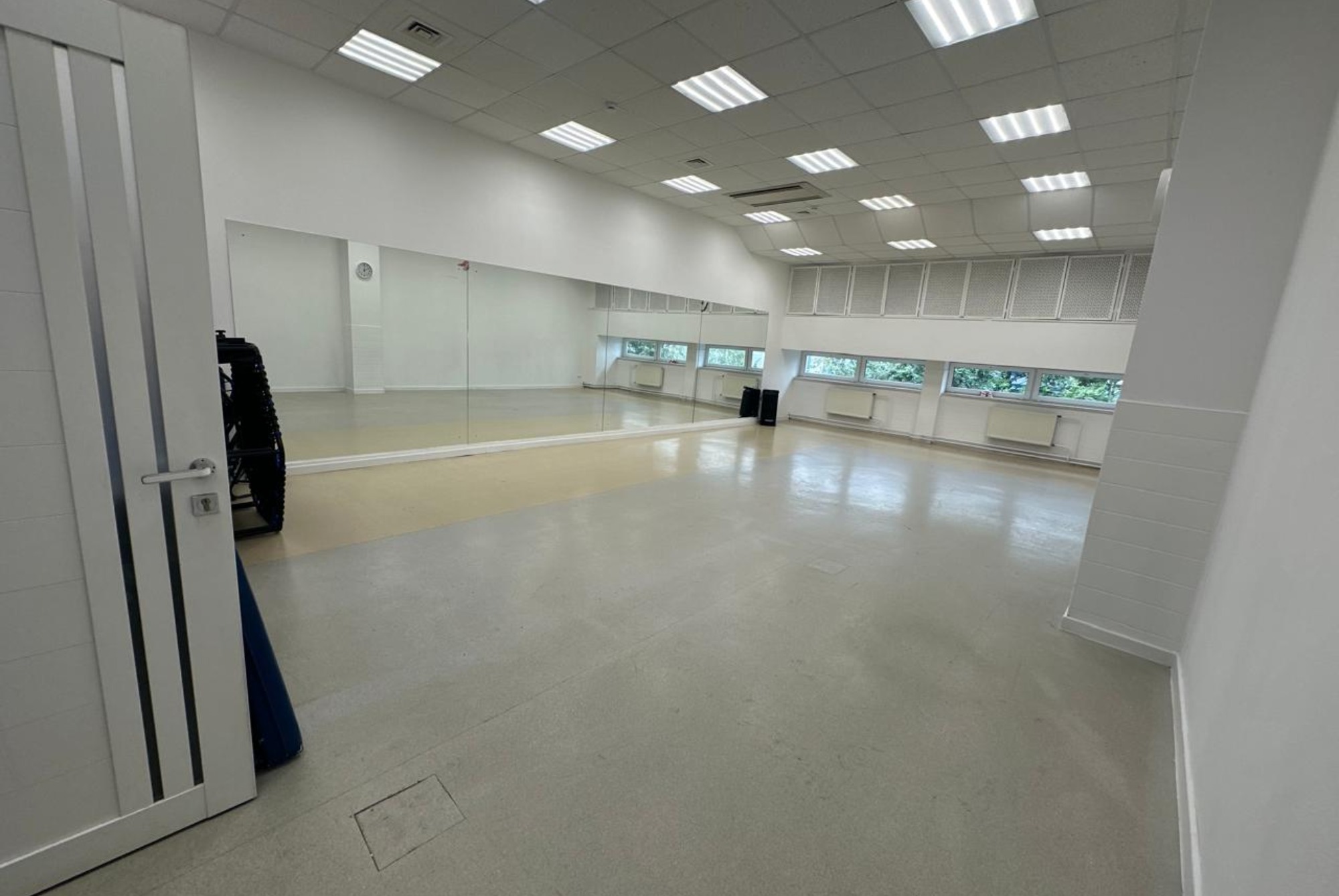 Чисто. Приятно. Удобно. Зал хороший. Музыка норм, пол твёрдый без подложек. Для танца на коленях не удобен, прыжки тоже ощутятся в коленях. Если это учитывать, то все ок))