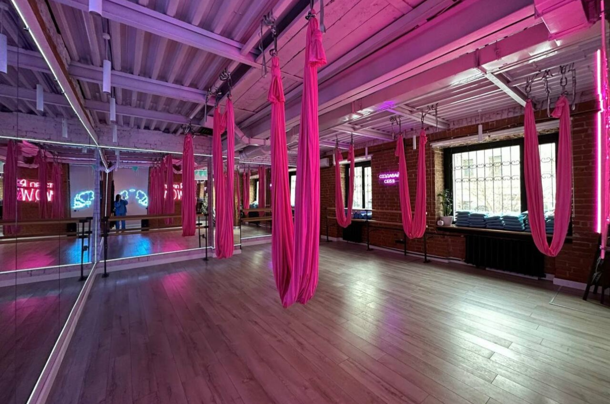 Идеально подойдёт для регулярных групповых тренировок, репетиций и мастер-классов Оборудование Гантели Фитбол Коврики Муз.центр с bluetooth Полотна Хореографические станки