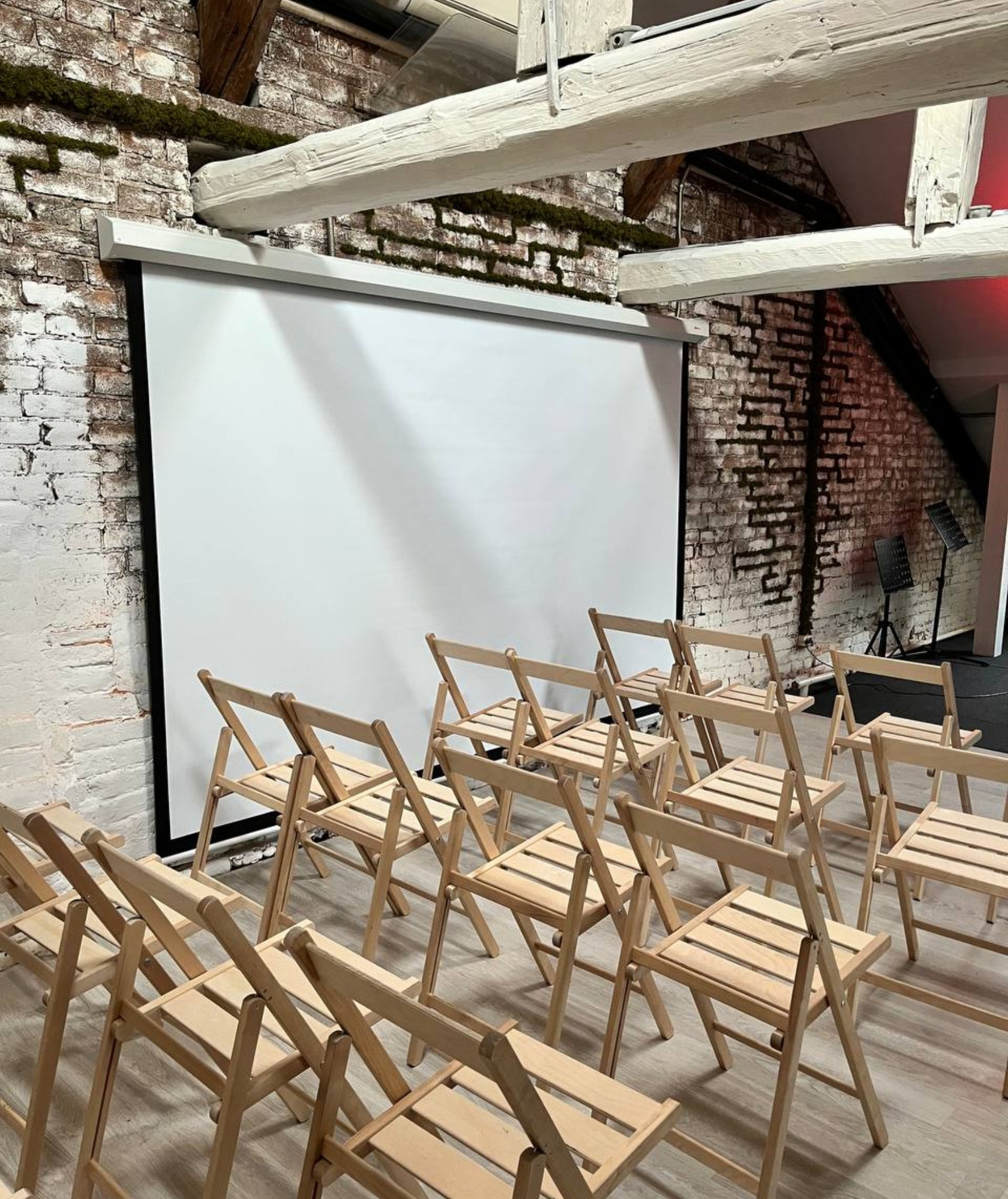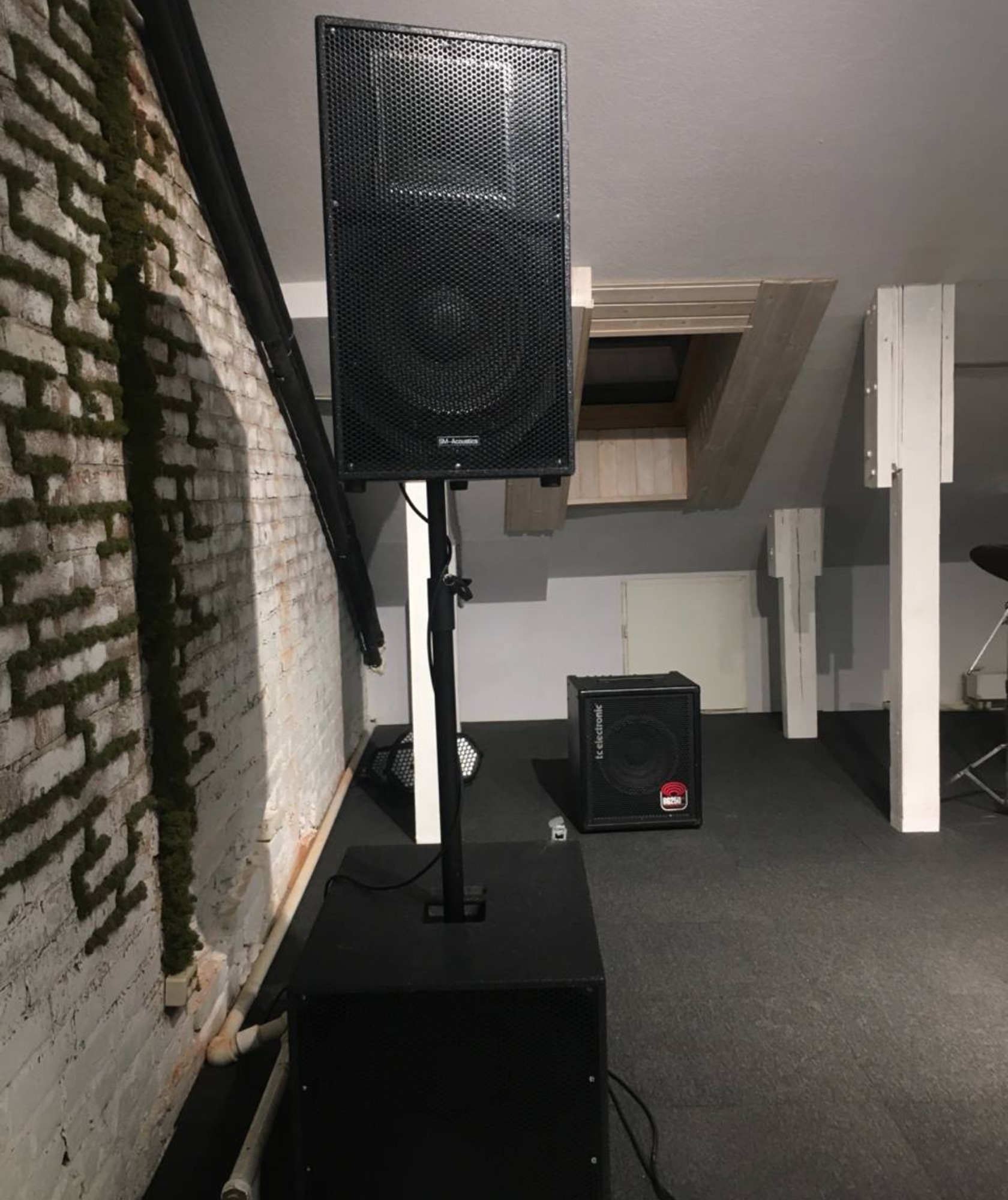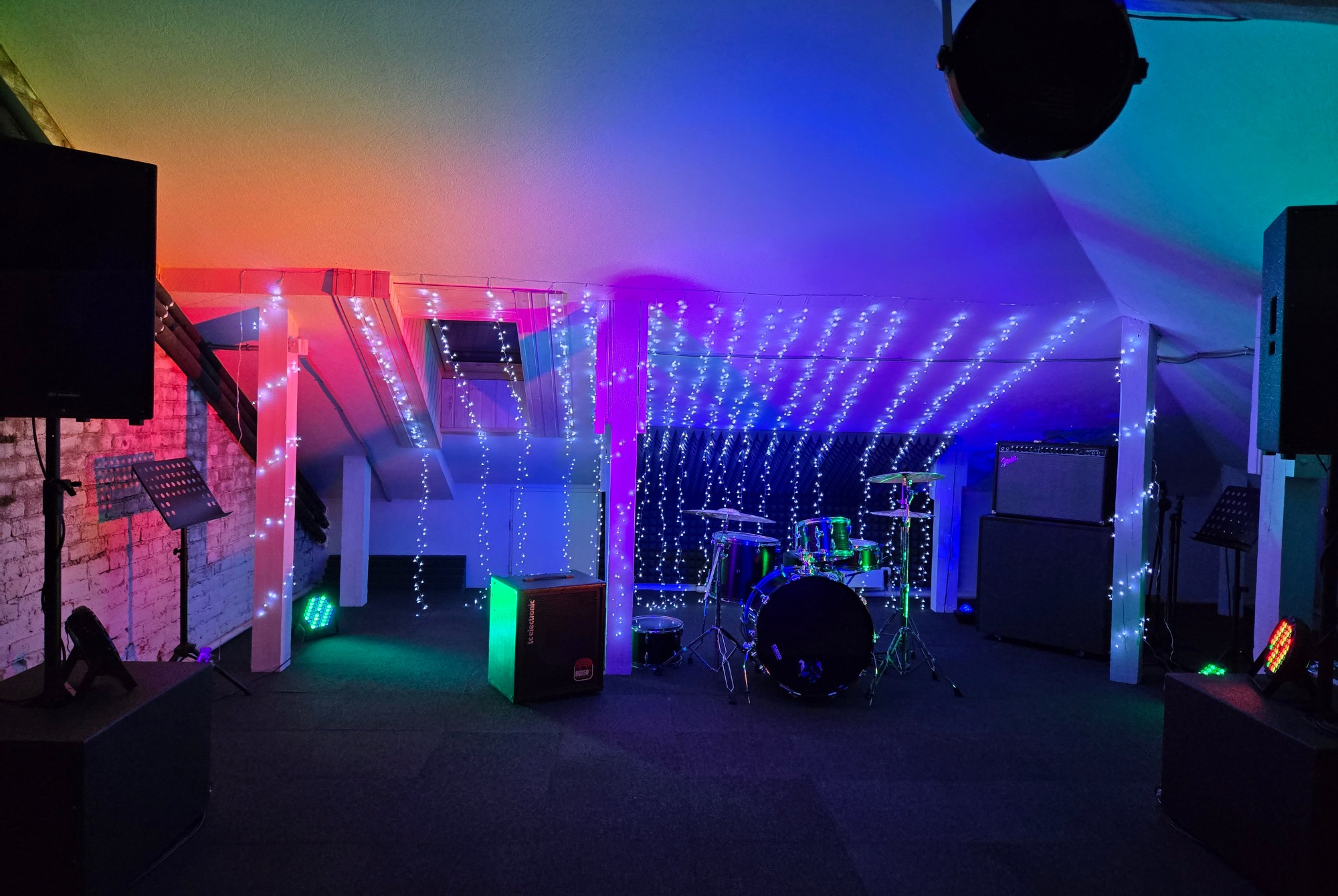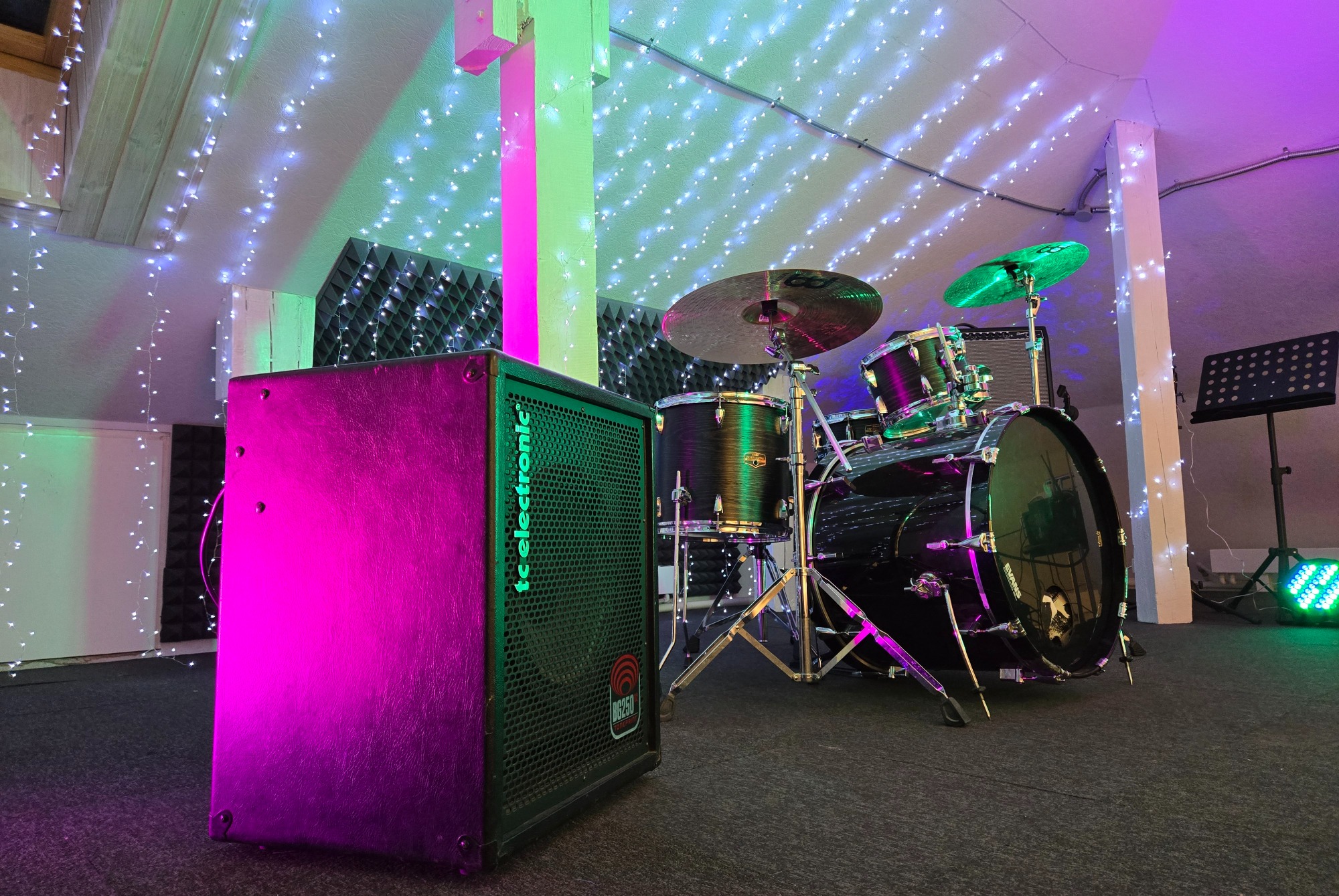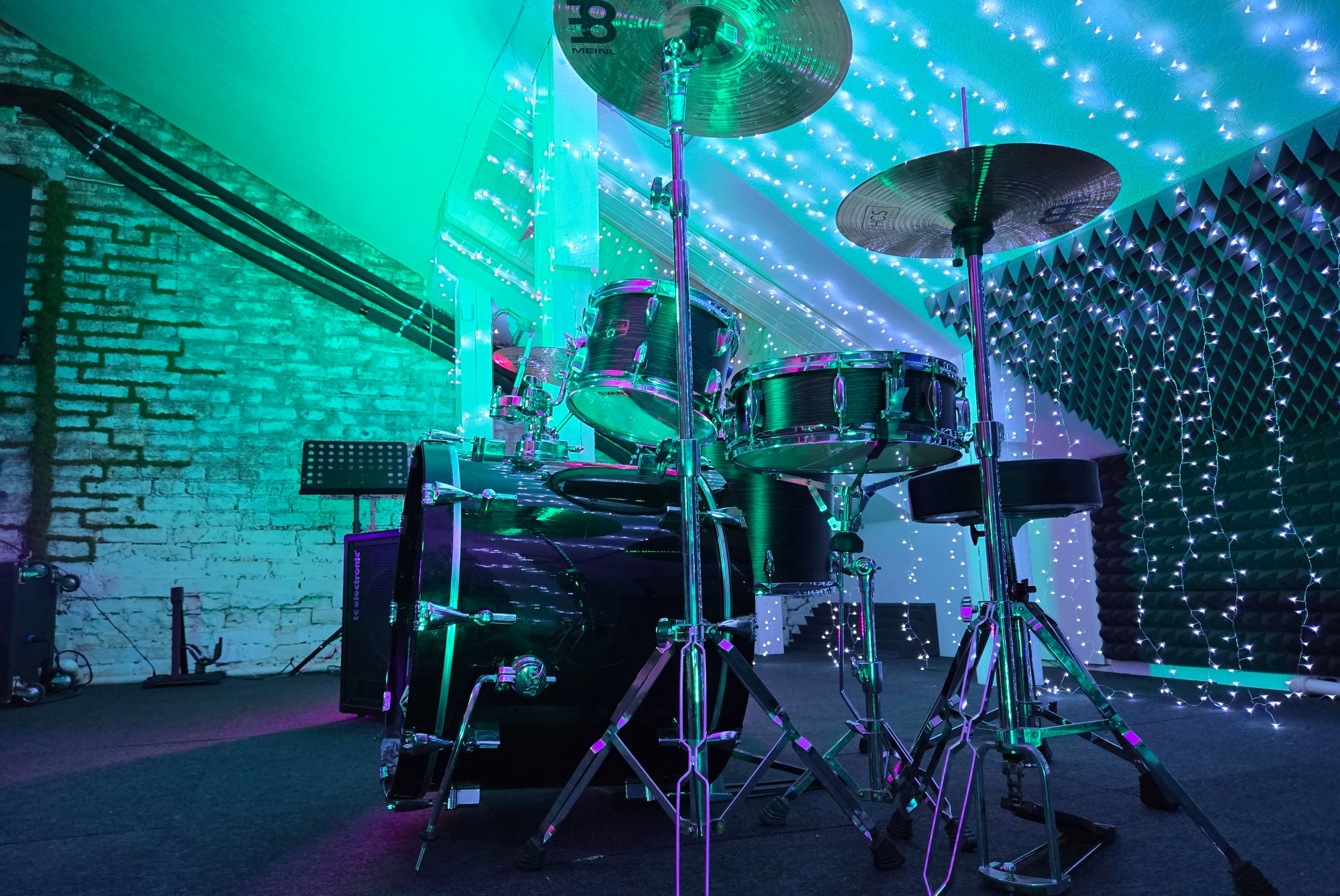 Небольшой уютный зал является частью репетиционной базы для живого муз ансамбля