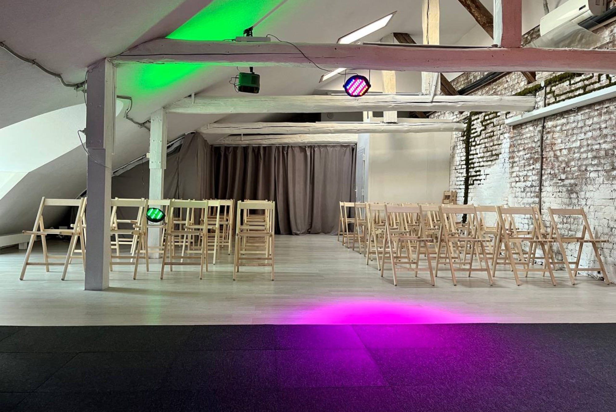 Предлагаем просторное и универсальное помещение, идеально подходящее для занятий танцами, постановок с живым аккомпанементом и репетиций с музыкальными коллективами.